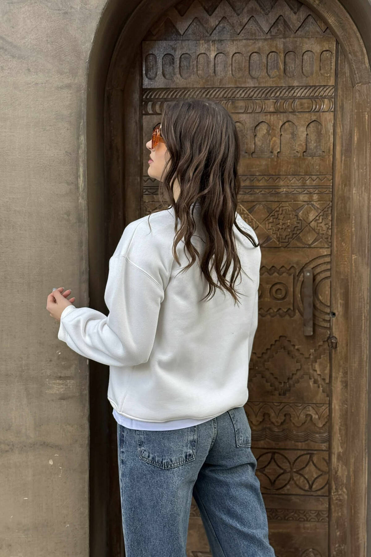 HOODIE E THJESHTË NJË NGJYRËSHE ME PUSH PËR FEMRA NË NGJYRË TË BARDHË