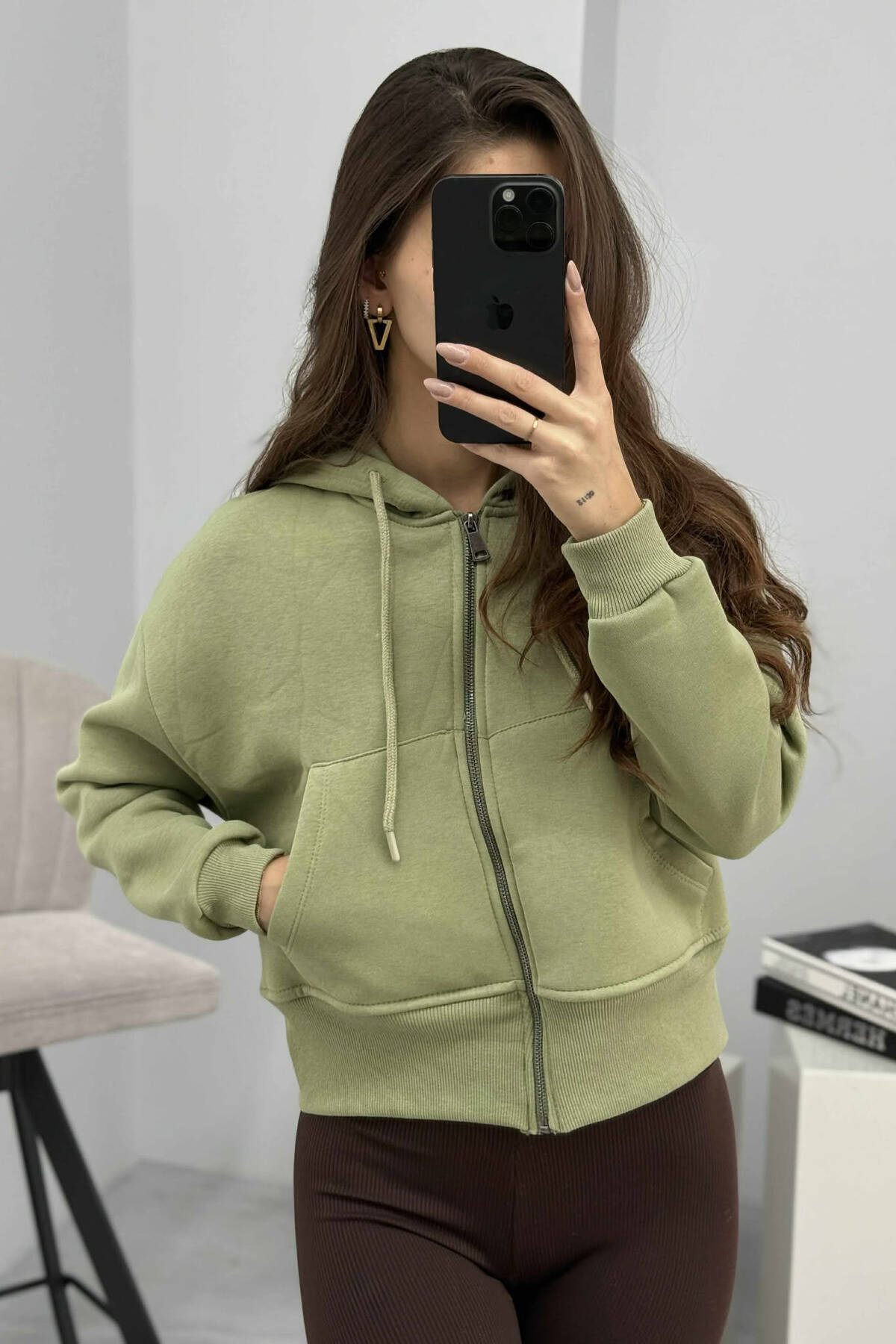 HOODIE ME ZINXHIR DHE ME PUSH NJË NGJYRËSHE PËR FEMRA NË NGJYRËN MENTE