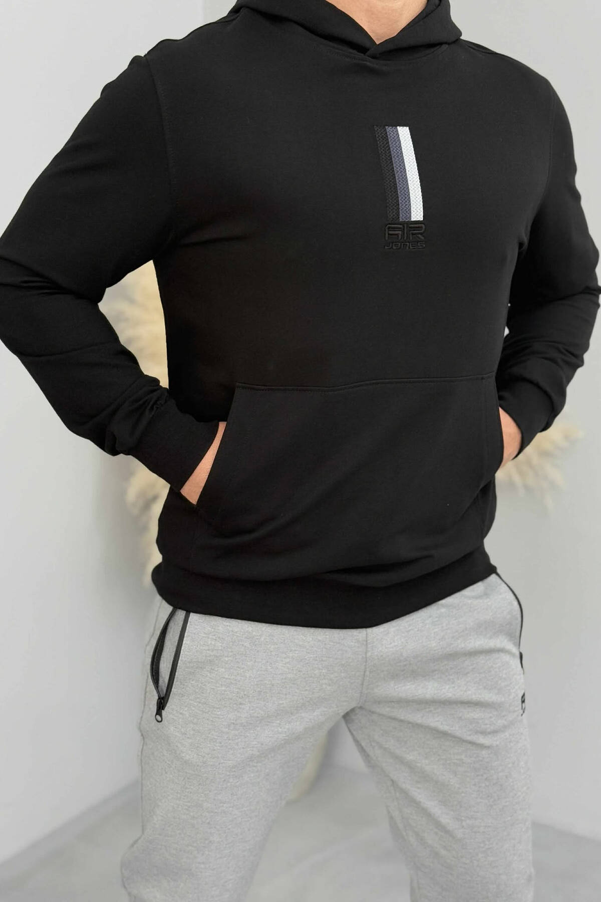 BLUZË NJËNGJYRËSHE ME JAKË ME ZINXHIR PËR MESHKUJ NË NGJYRËN E ZEZË