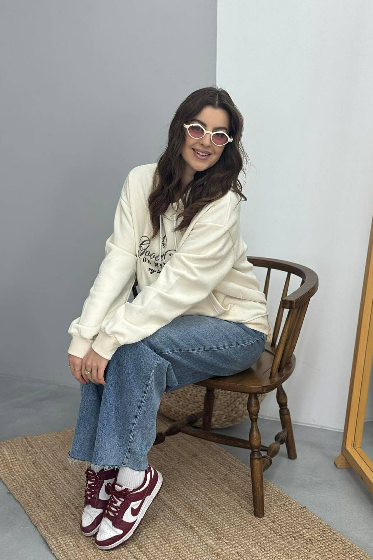 HOODIE NJE NGJYRSHE ME PUSH DHE ME SHKRIM NE PJESEN PARA PER FEMRA NE NGJYRE KREM