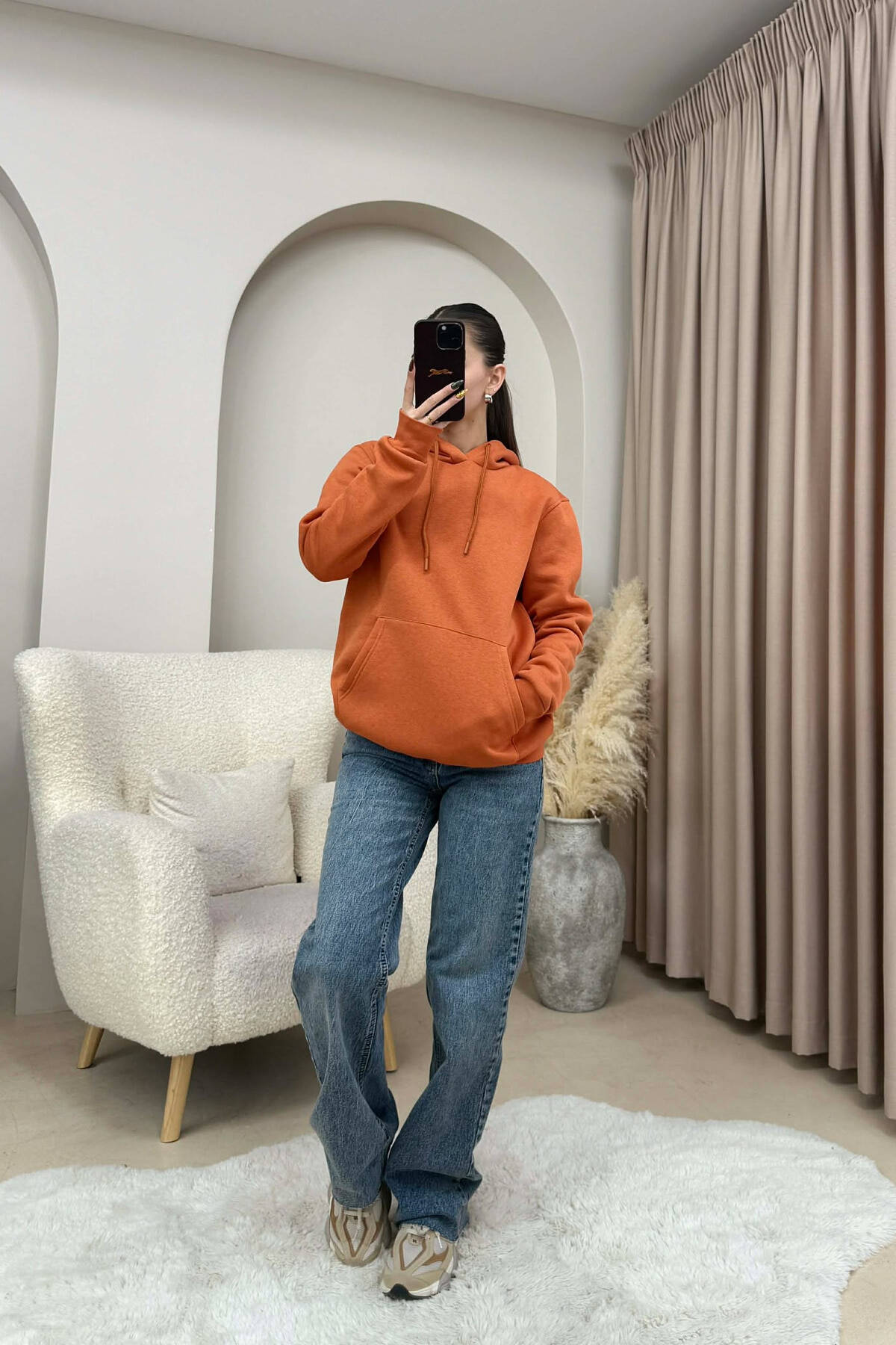 HOODIE NJE NGJYRESHE ME PUSH PER FEMRA NE NGJYRE PORTOKALLI