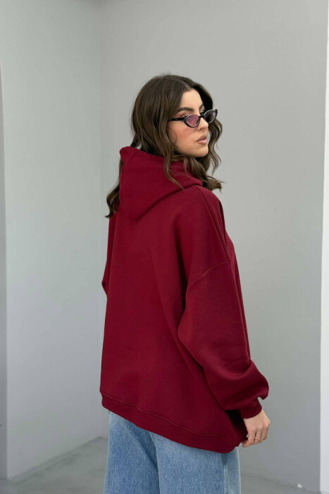 HOODIE NJË NGJYRËSHE ME PUSH PËR FEMRA NË NGJYRËN VISHNJË