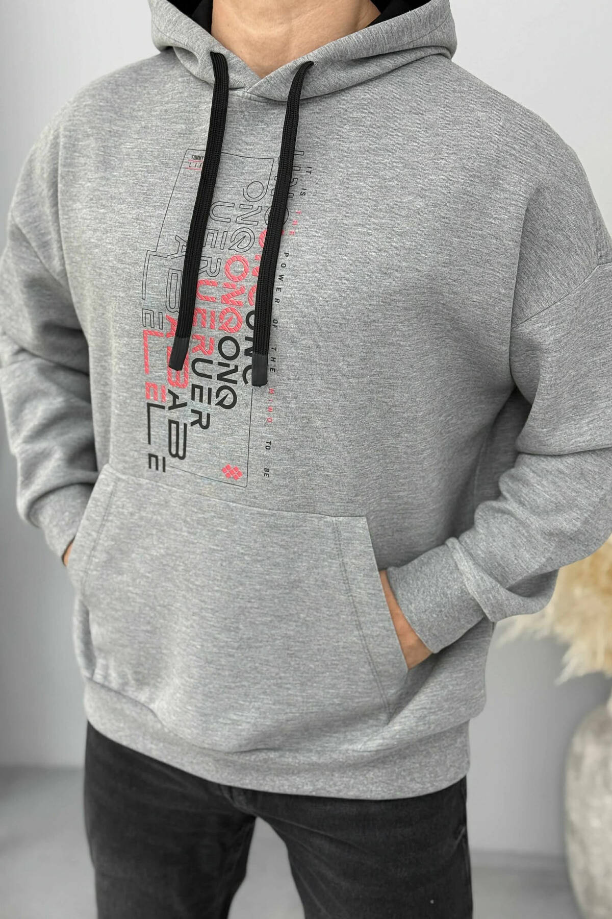 HOODIE NJË NGJYRËSHE ME DIZAJN TË THJESHTË PËR MESHKUJ NË NGJYRËN GRI