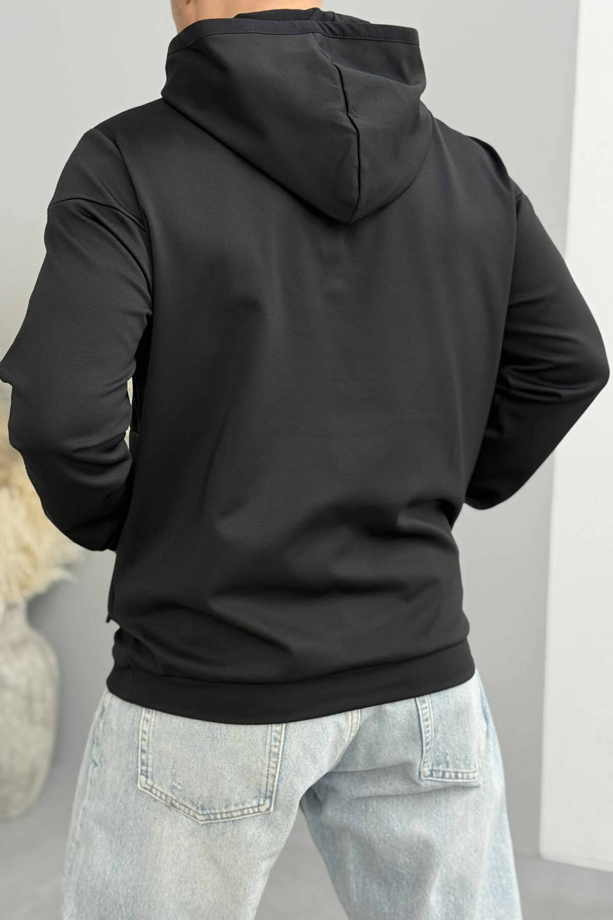 HOODIE NJËNGJYRËSHE ME JAKË ME ZINXHIR PËR MESHKUJ NË NGJYRËN E ZEZË