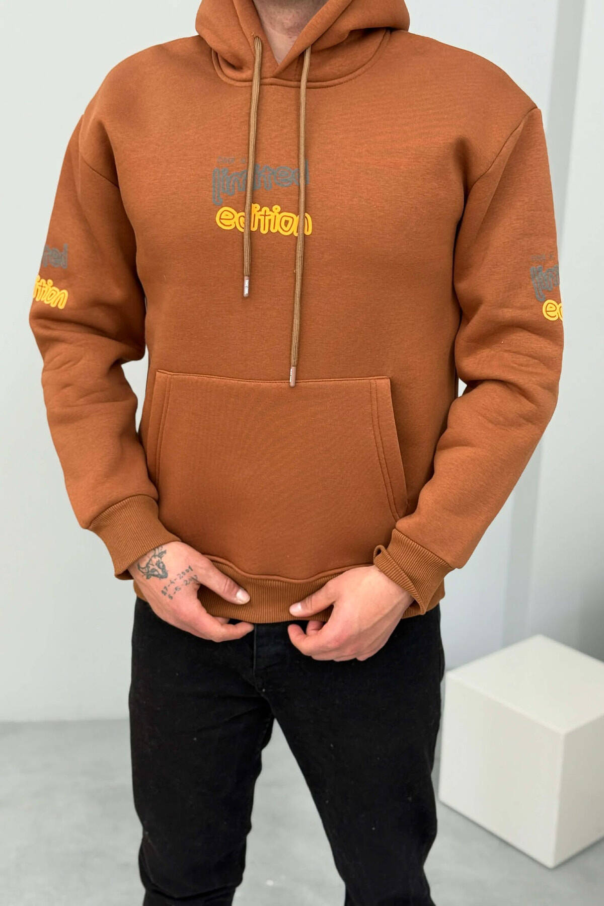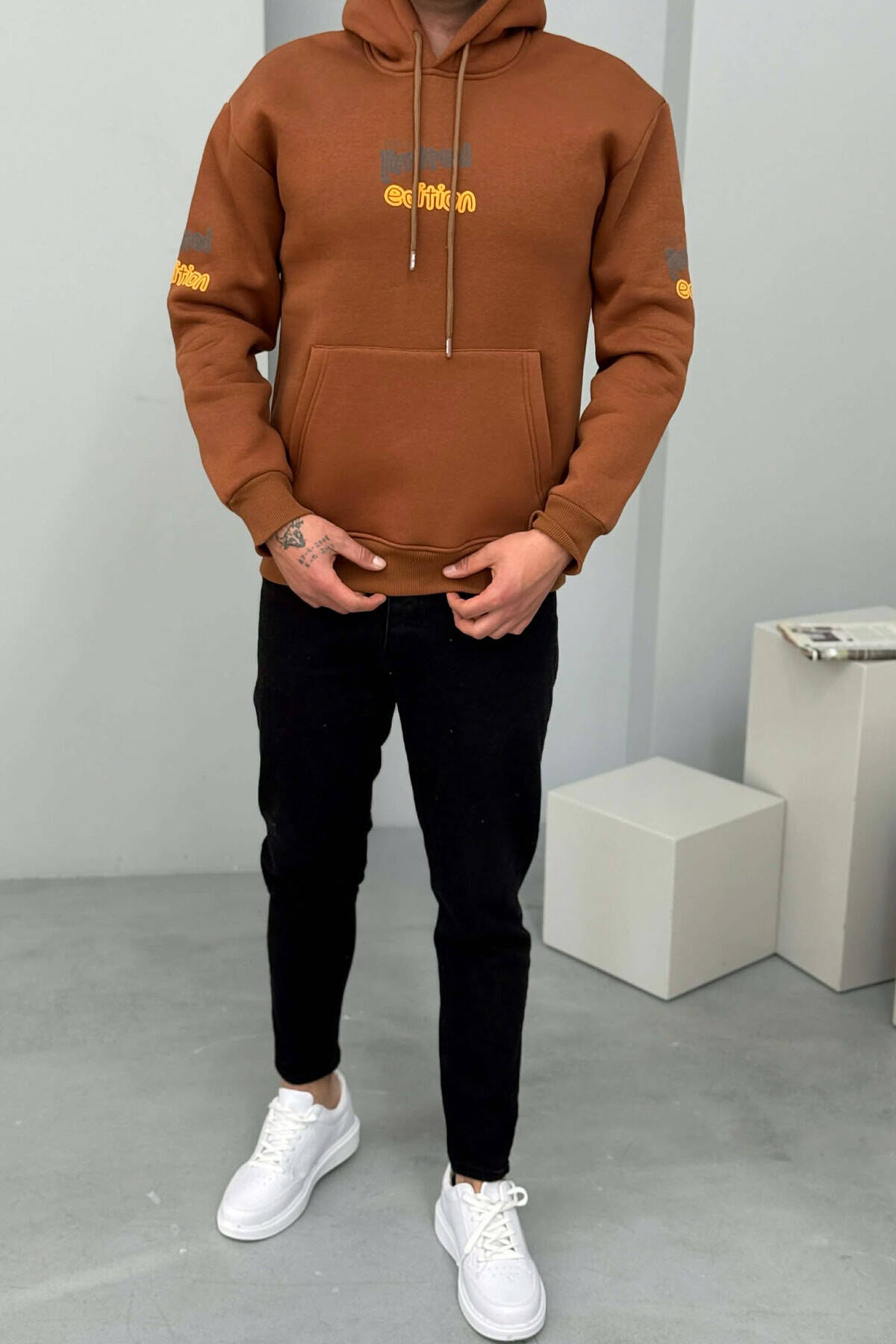 HOODIE ME PUSH DHE ME SHKRIME PER MESHKUJ NE NGJYRE KAFE