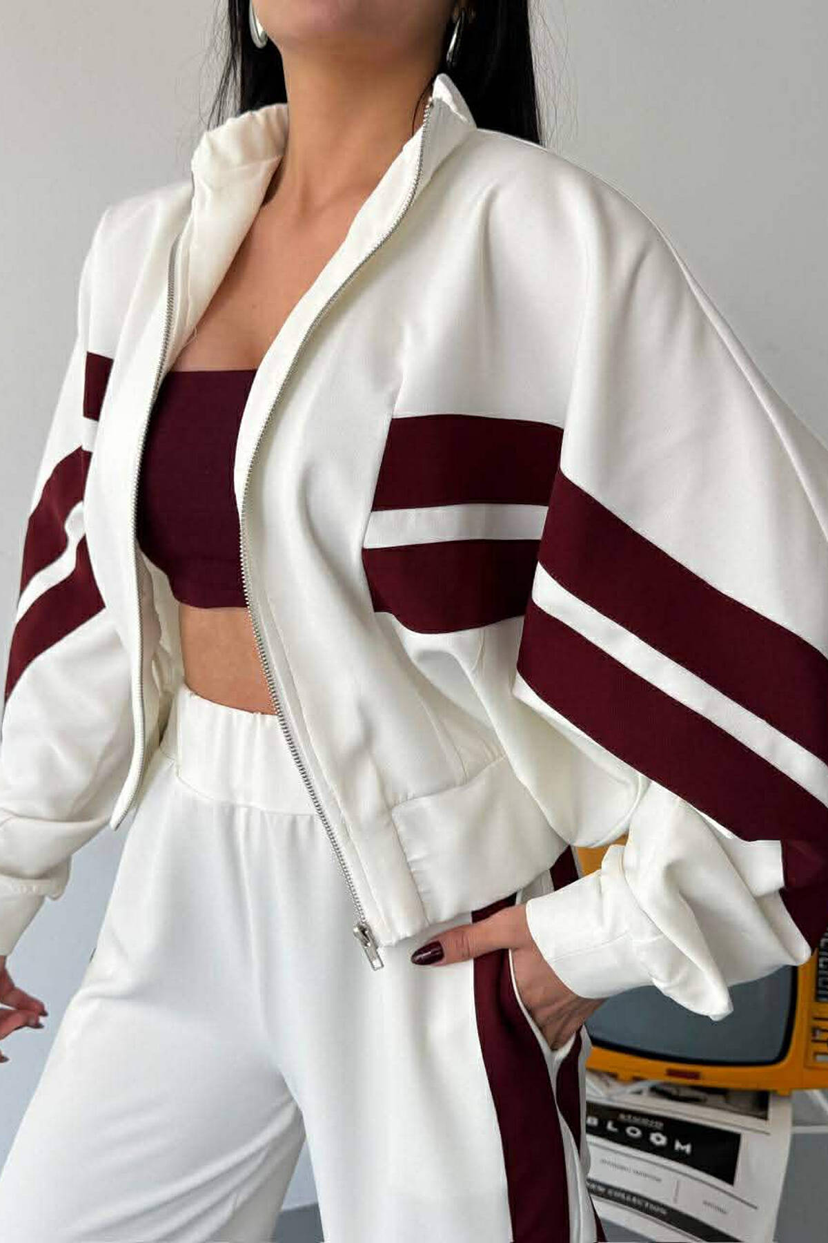 JACKET+TROUSERS SIMPLE STRIPED WOMEN SET WHITE-BURGUNDY/BAVI