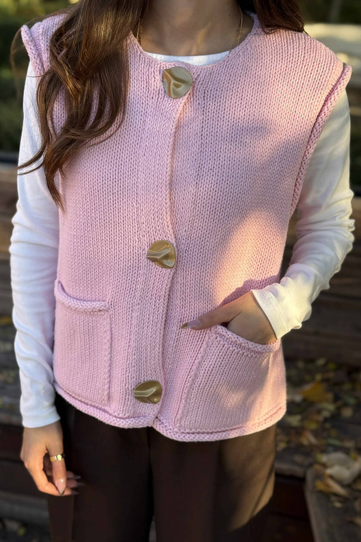 ONE COLOR BUTTONED WOMAN VEST BEIGE/BEZHE