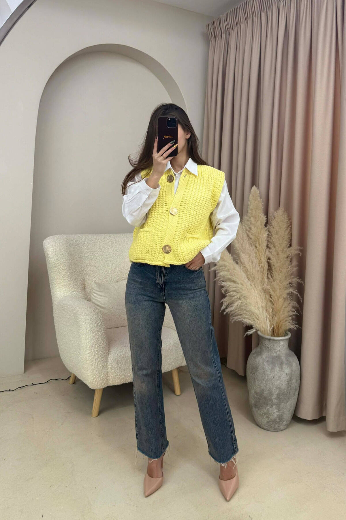 ONE COLOR BUTTONED WOMAN VEST BEIGE/BEZHE