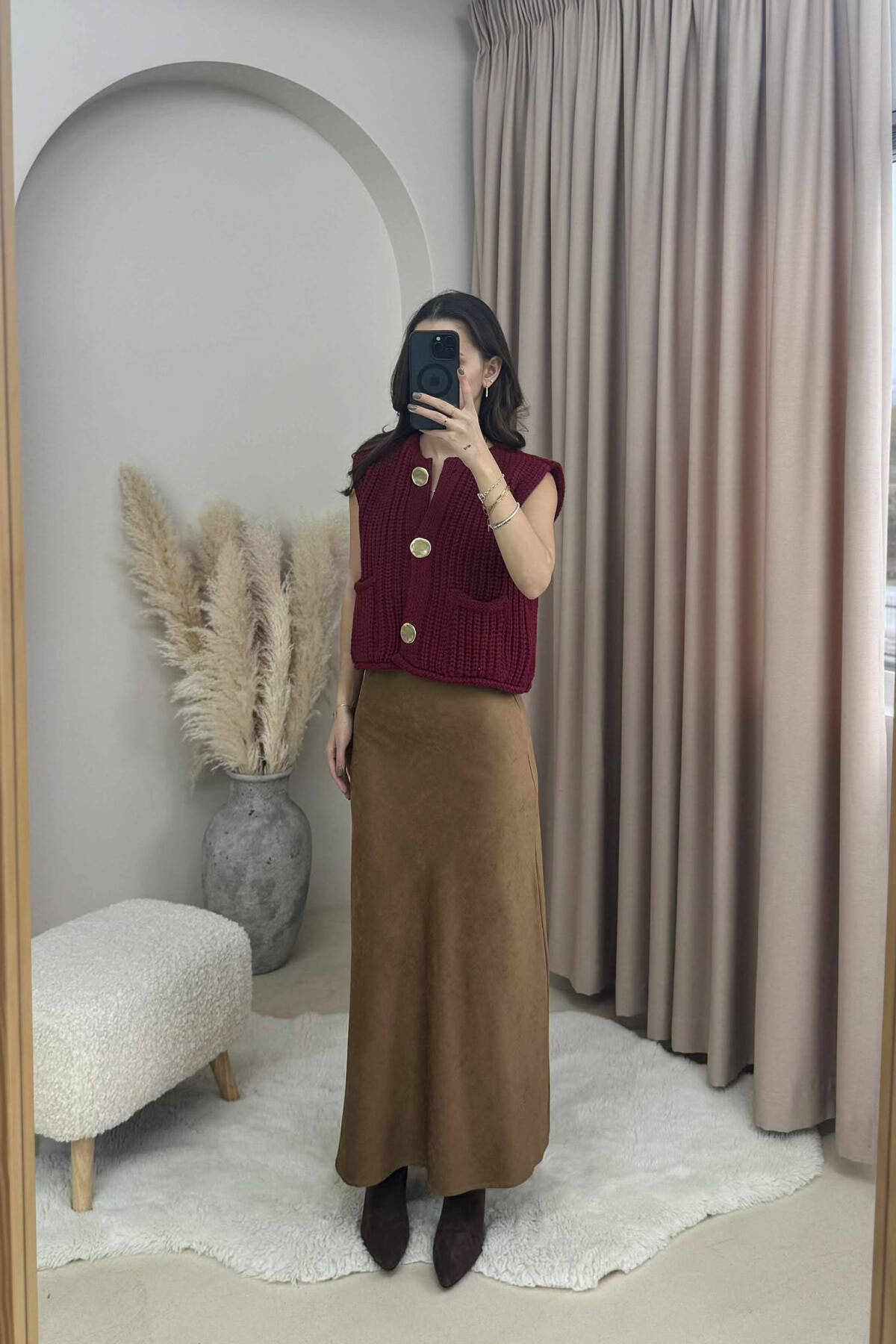 ONE COLOR BUTTONED WOMAN VEST BEIGE/BEZHE
