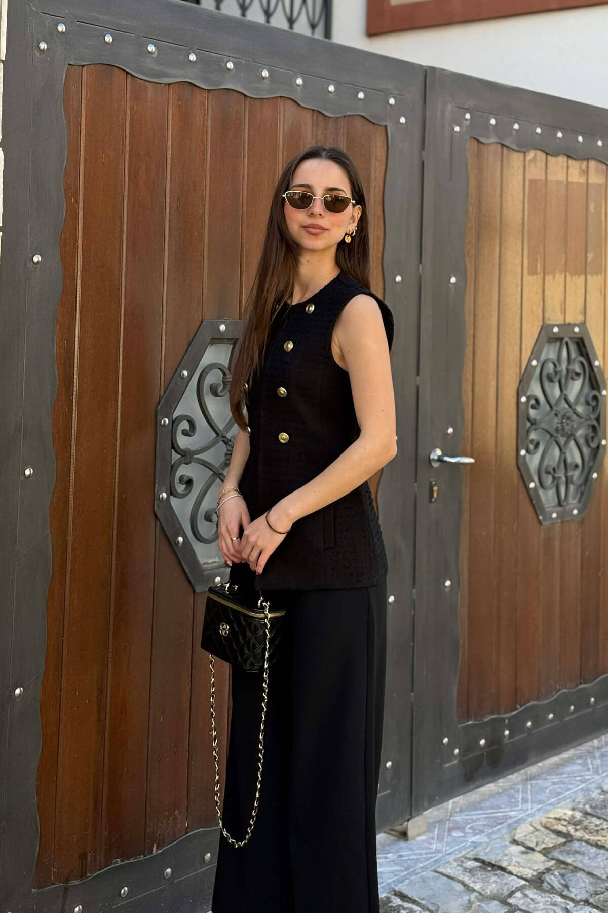 ONE COLOR BUTTONED WOMAN VEST BEIGE/BEZHE