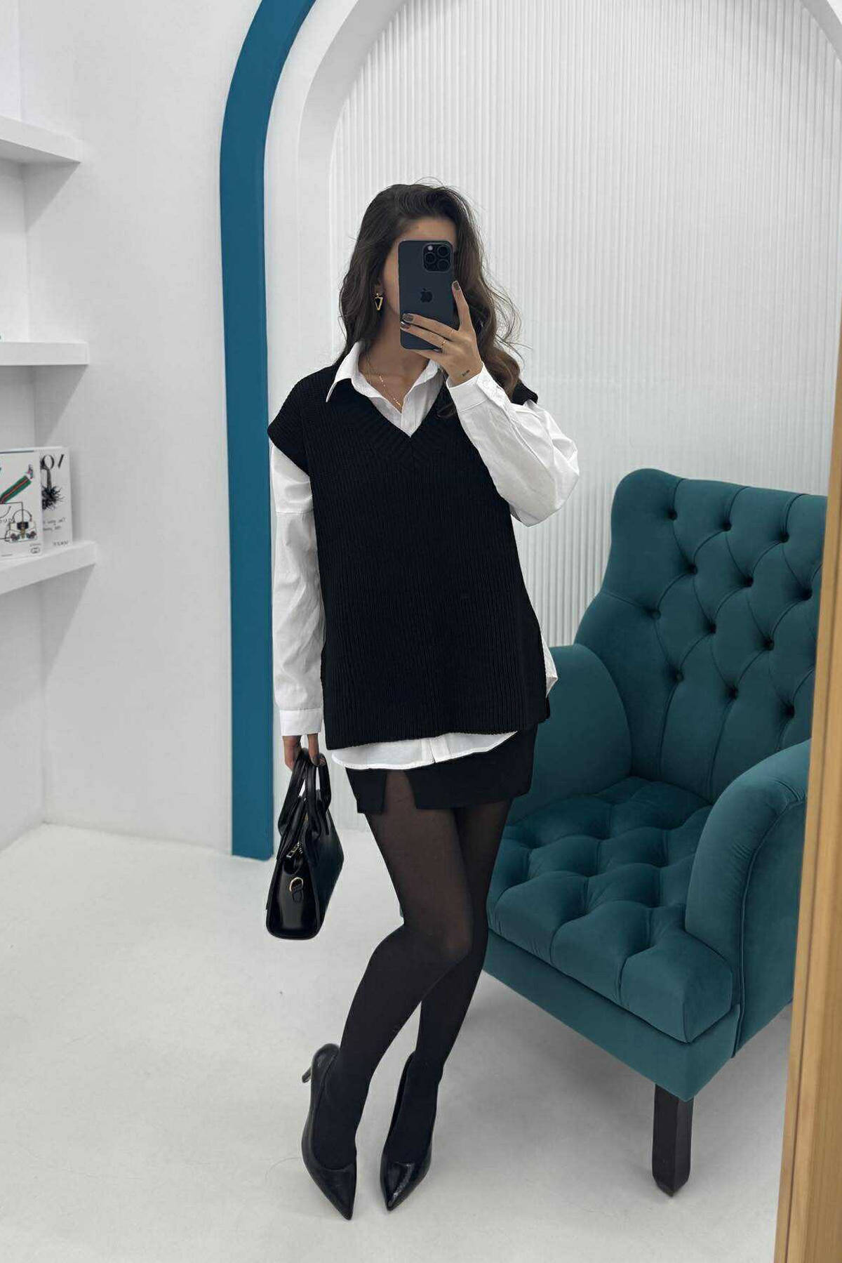 JELEK I THJESHTË NJË NGJYRËSH ME JAKË V PËR FEMRA NË NGJYRË TË ZEZË