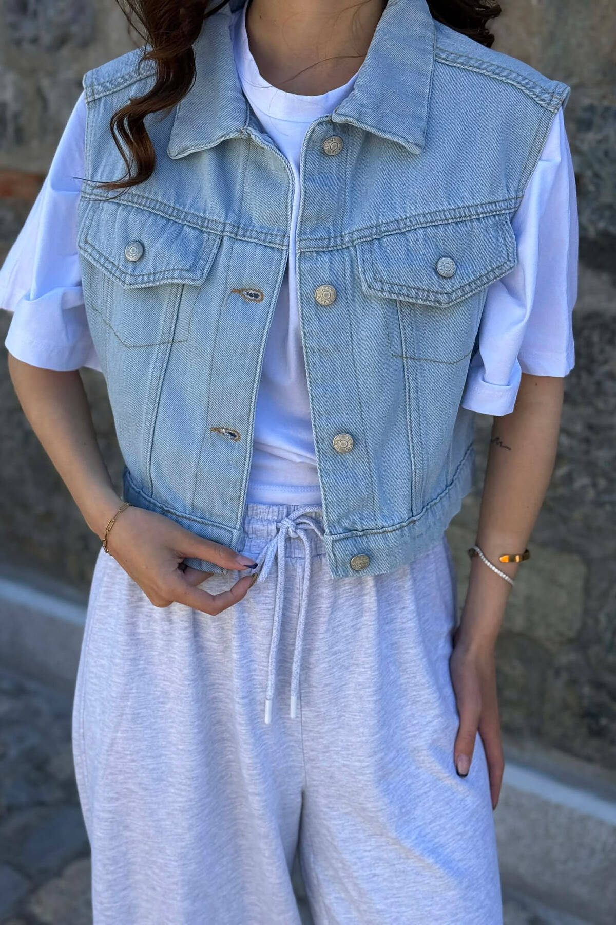 ONE COLOR BUTTONED WOMAN VEST BEIGE/BEZHE