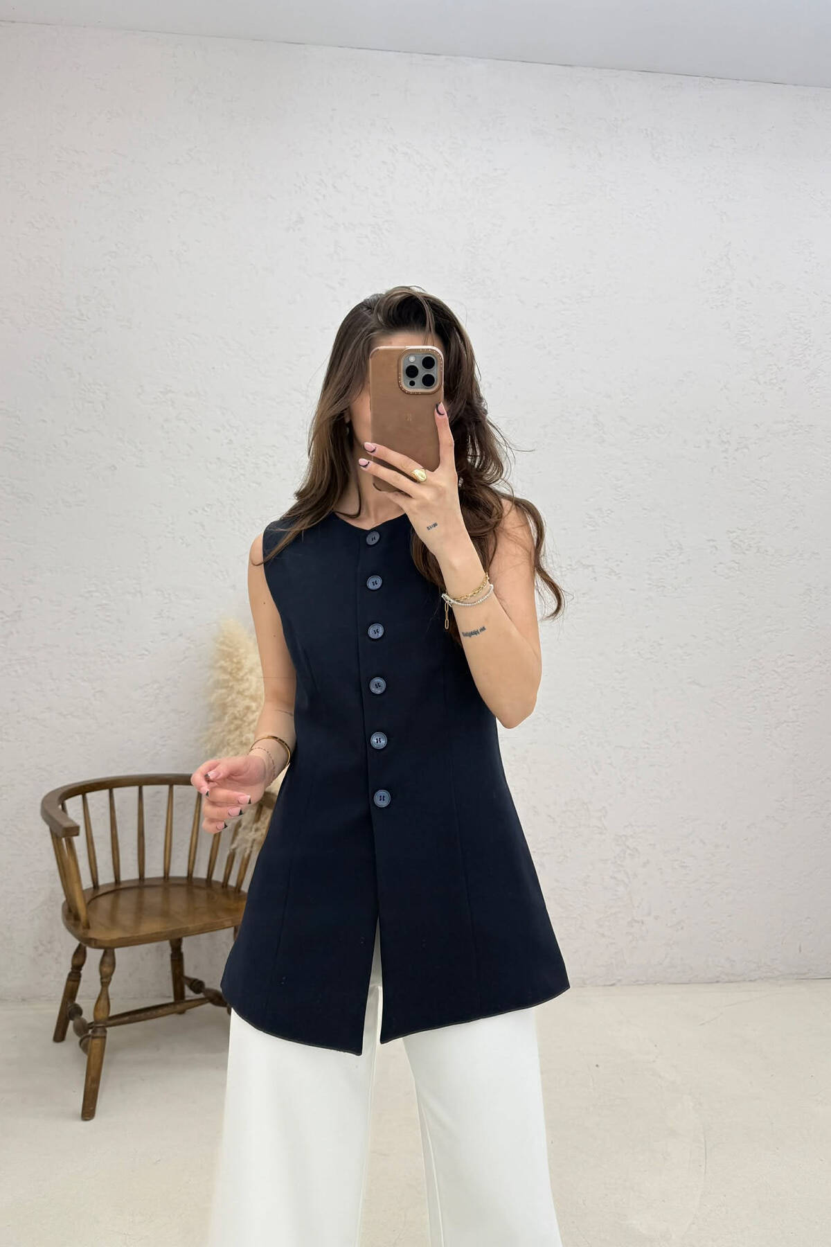 ONE COLOR BUTTONED WOMAN VEST BEIGE/BEZHE