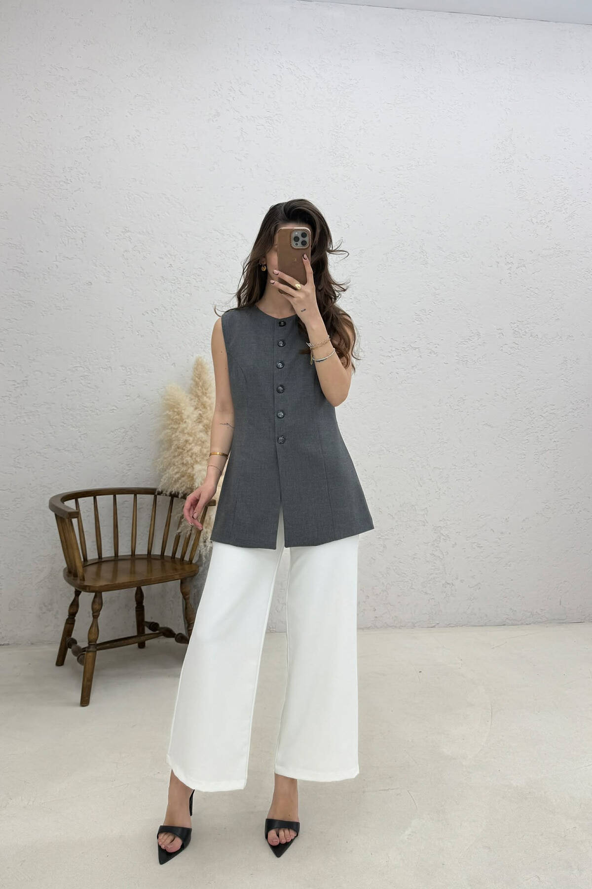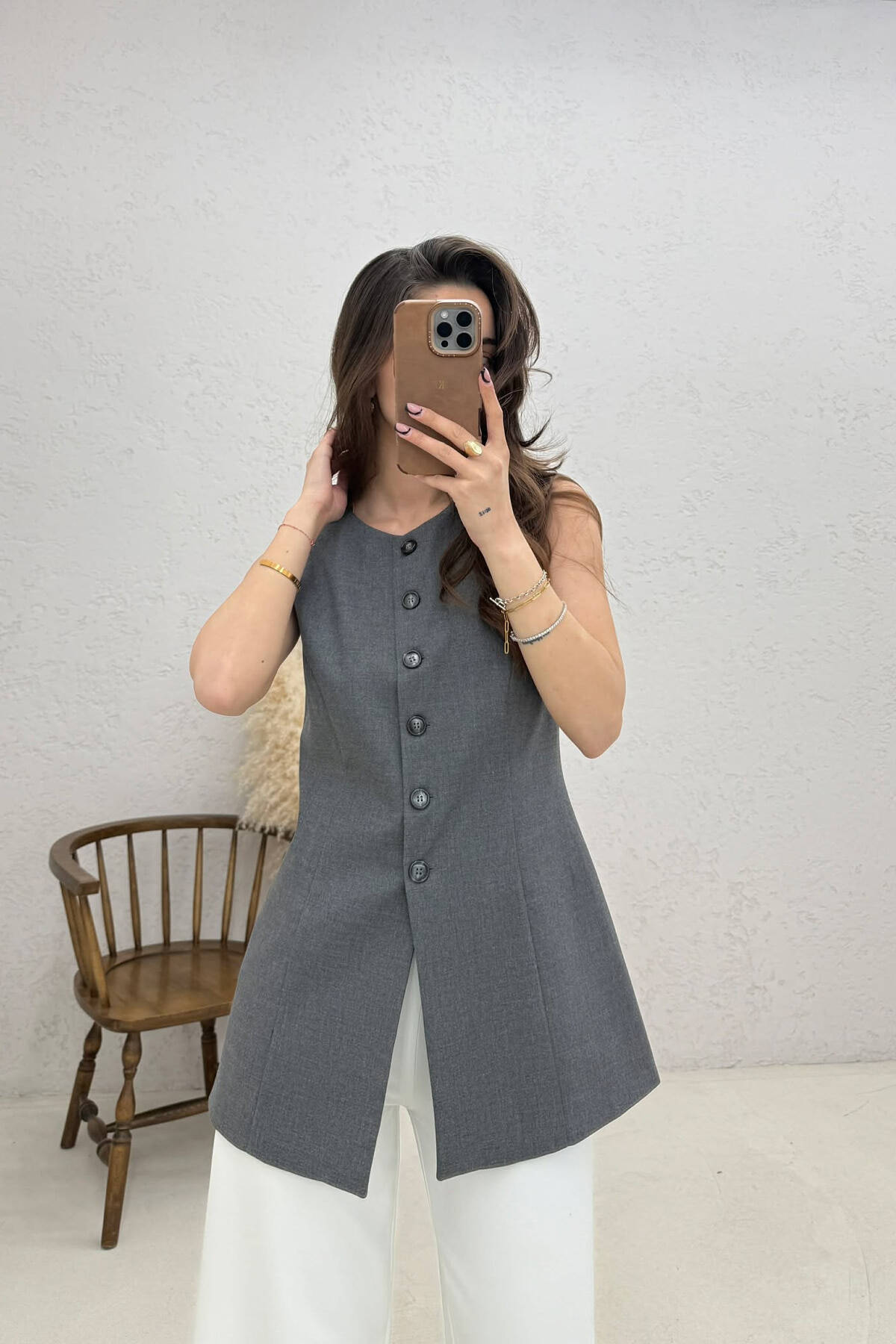 ONE COLOR BUTTONED WOMAN VEST BEIGE/BEZHE