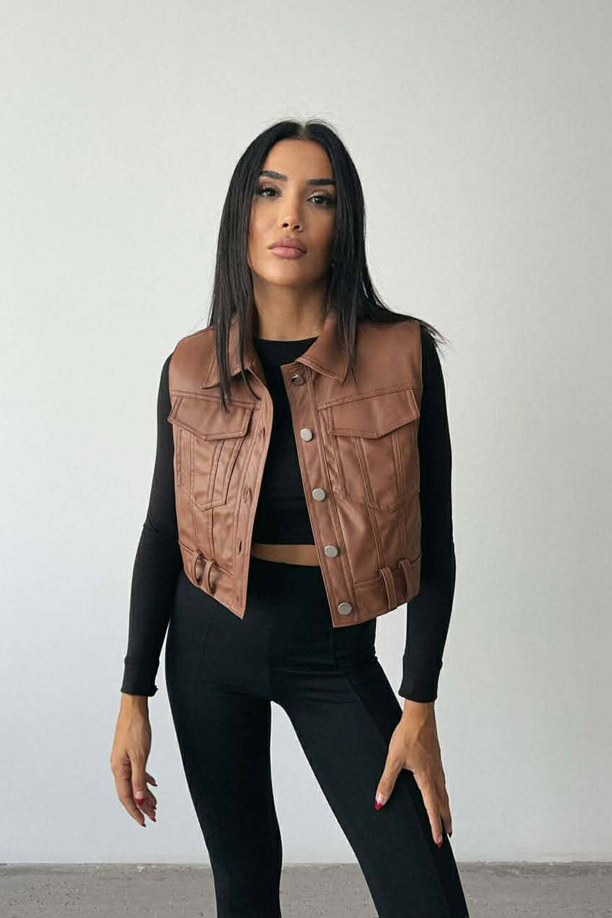 ONE COLOR LEATHER WOMEN VEST BLACK/ E ZEZE