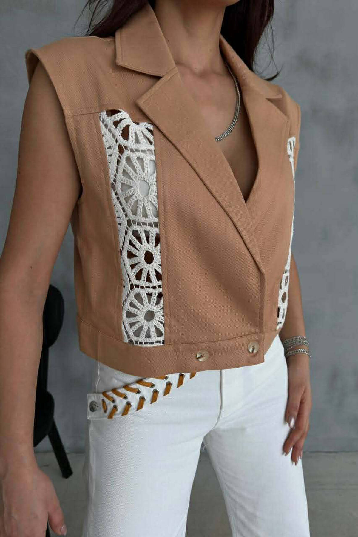 JELEK NJE NGJYRESH ME DETAJE THURRJESH PER FEMRA NE NGJYRE KAFE TE ZBARDHUR