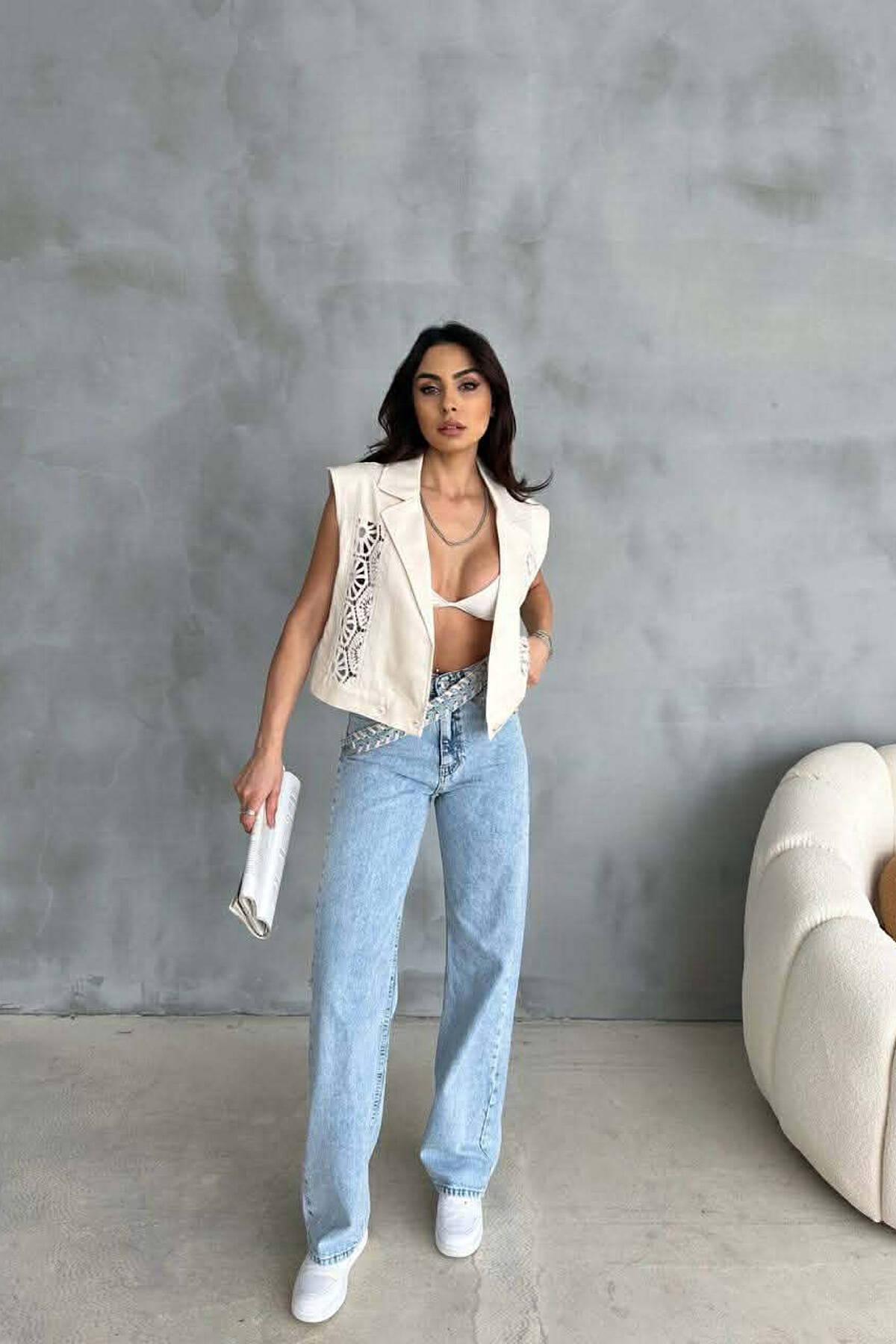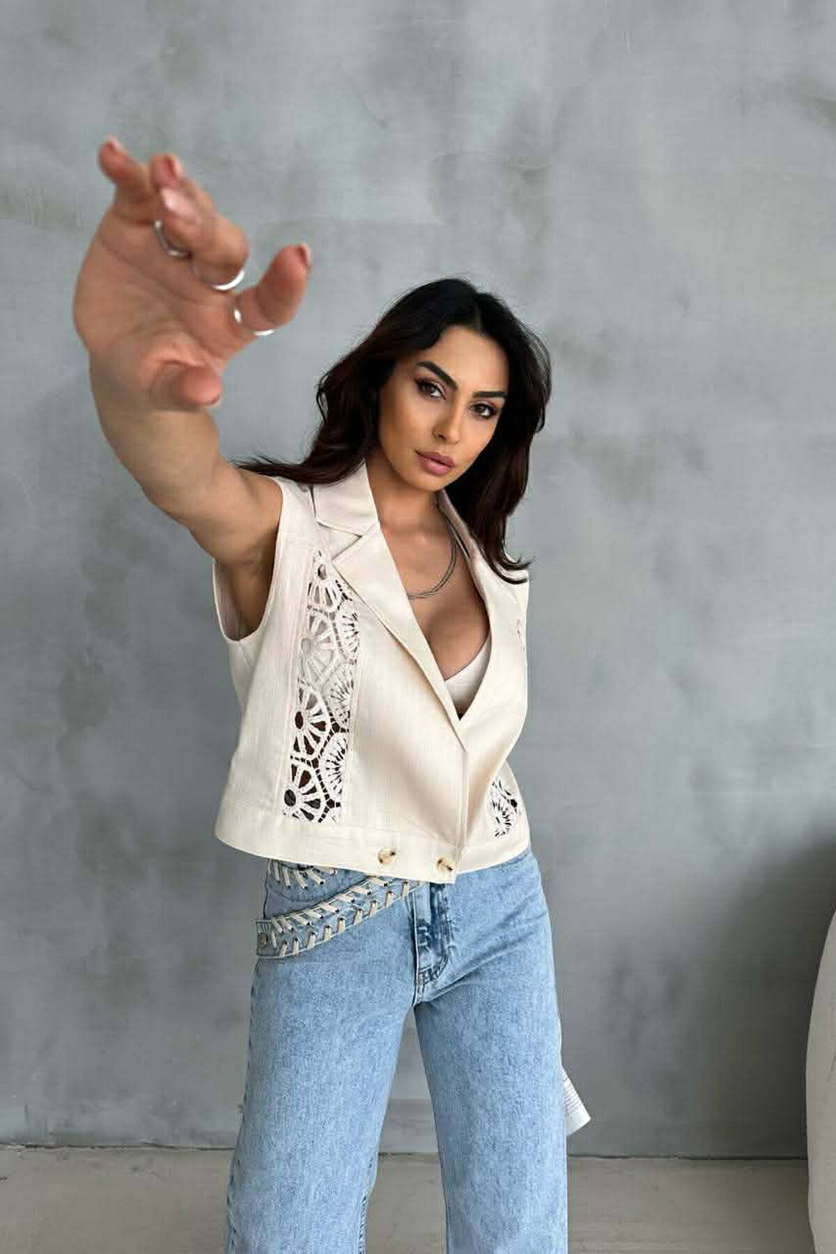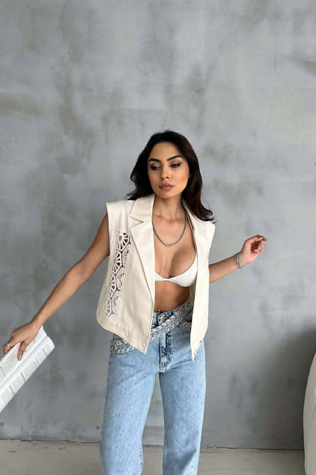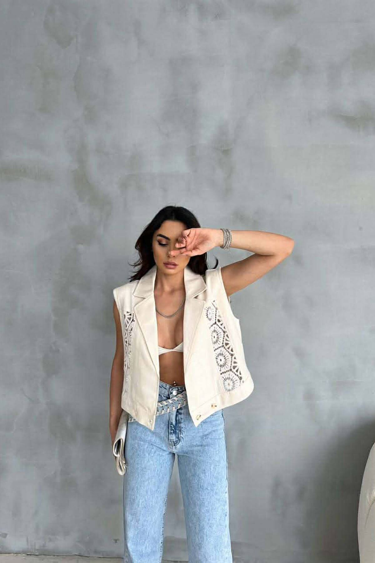 JELEK NJE NGJYRESH ME DETAJE THURRJESH PER FEMRA NE NGJYRE KREM