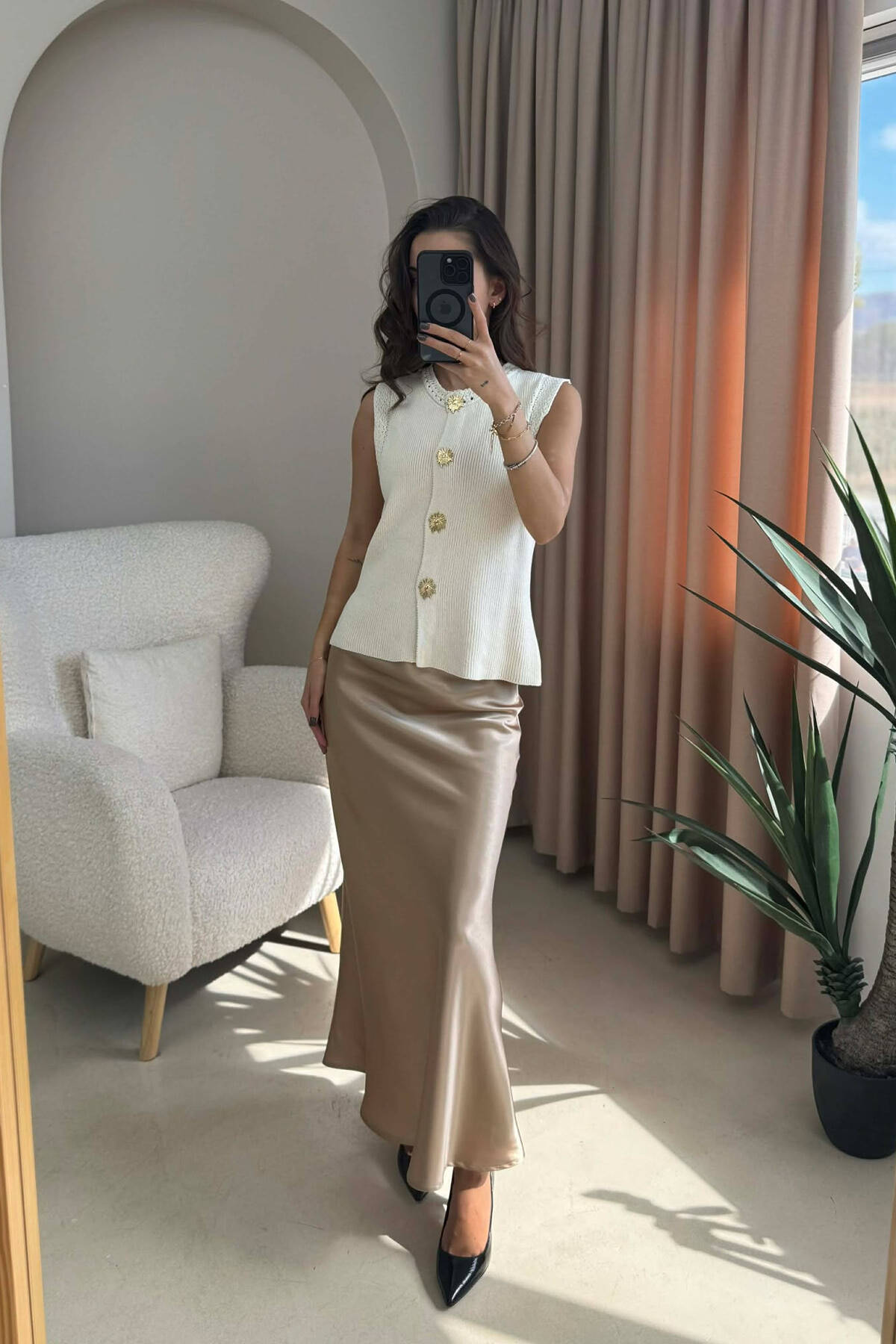 ONE COLOR BUTTONED WOMAN VEST BEIGE/BEZHE