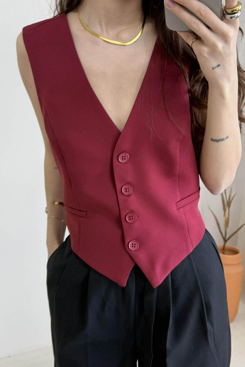 BELT DETAIL ONE COLOR WOMEN VEST RED/E KUQE
