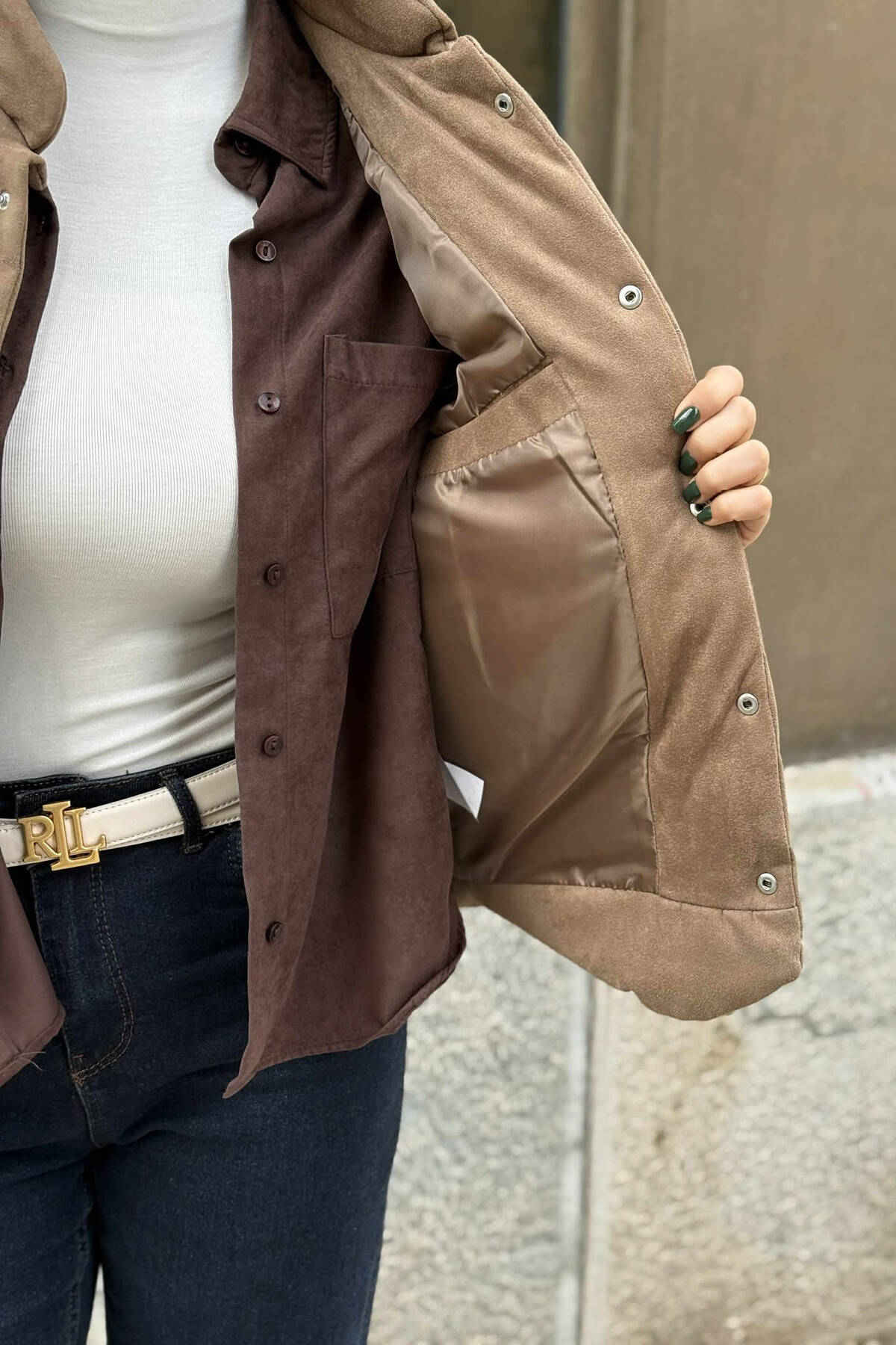 XHAKETE NJE NGJYRESHE ME BUTONA PER FEMRA NE NGJYRE KAFE TE ZBARDHUR