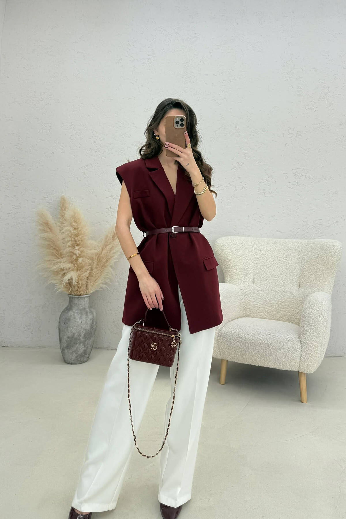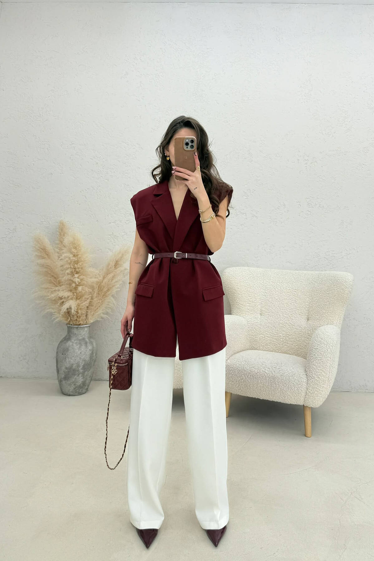JELEK NJË NGJYRËSH ME BUTONA PËR FEMRA NË NGJYRE VISHNJE