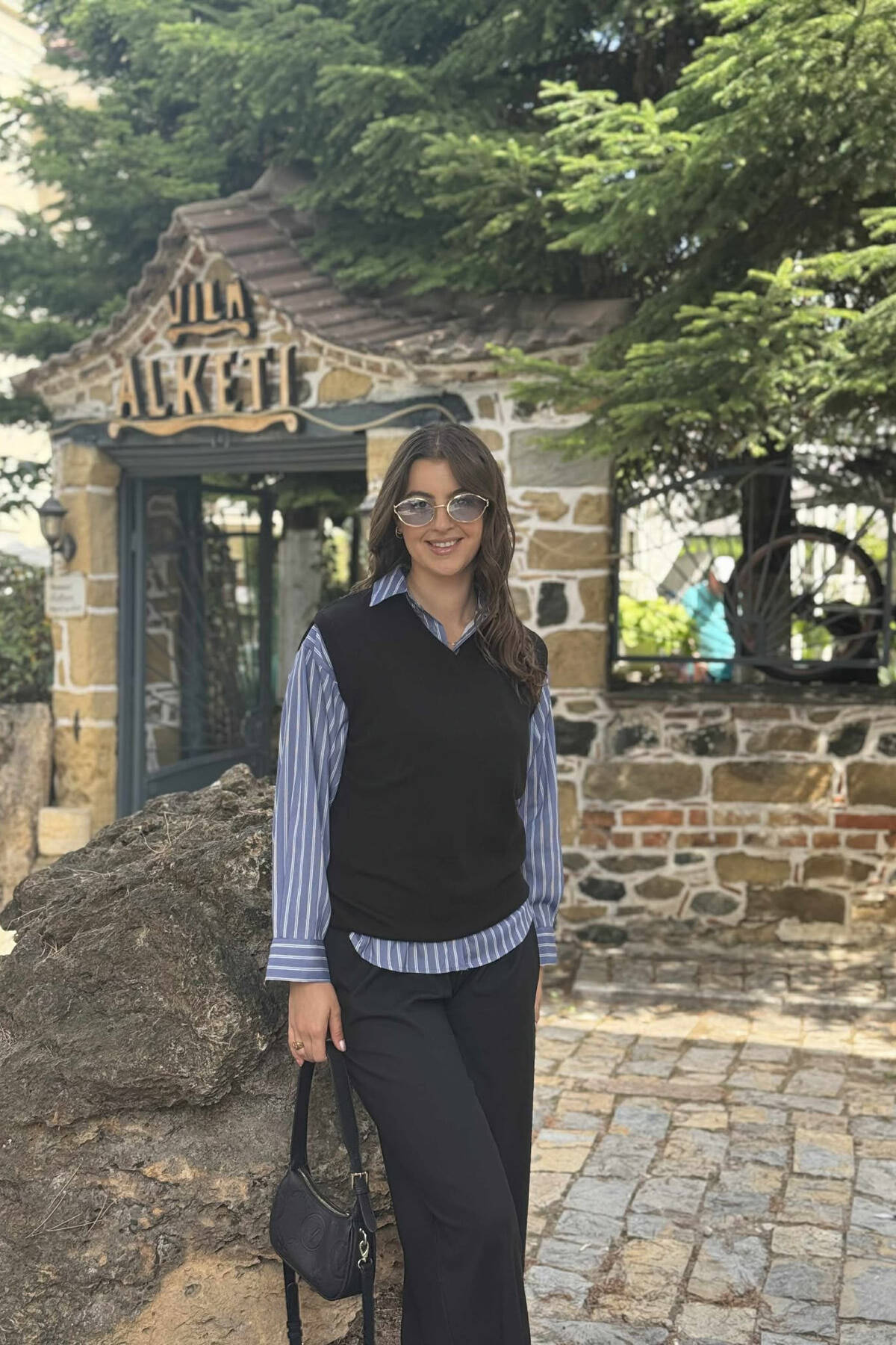 ONE COLOR KNITTED DETAILS WOMEN VEST CREAM/KREM