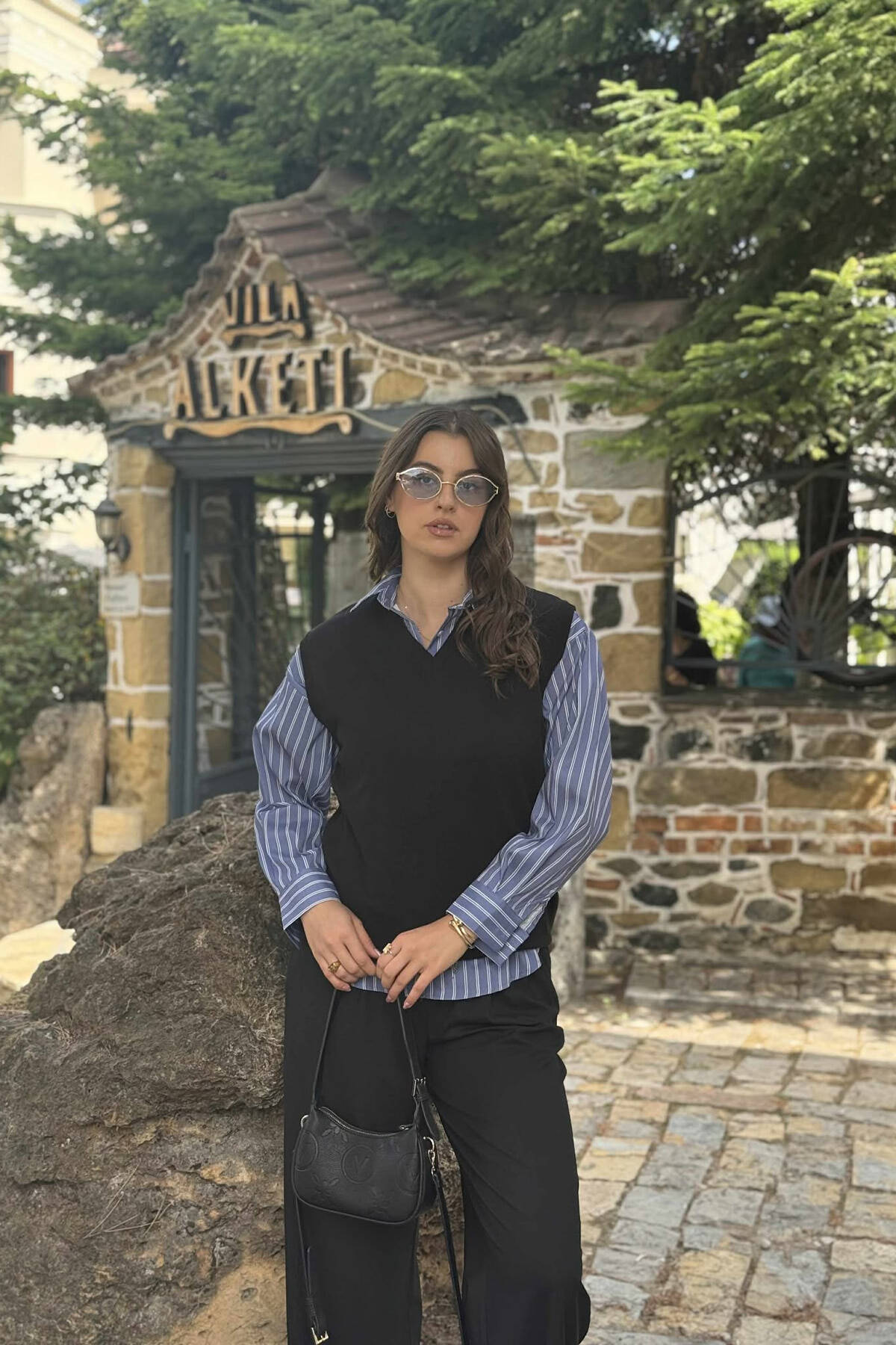 JELEK NJË NGJYRËSH ME JAKE V PËR FEMRA NË NGJYRË TË ZEZË