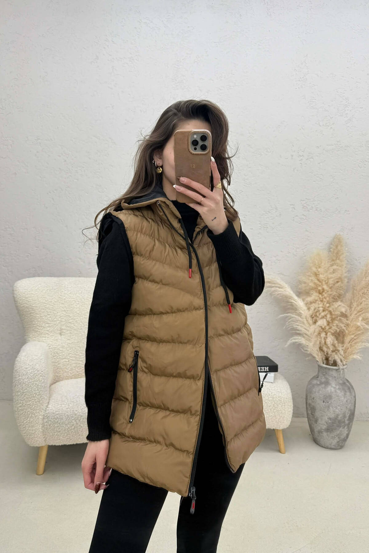 FRONT POCKETS DETAIL ONE COLOR WOMEN VEST BEIGE/BEZHE