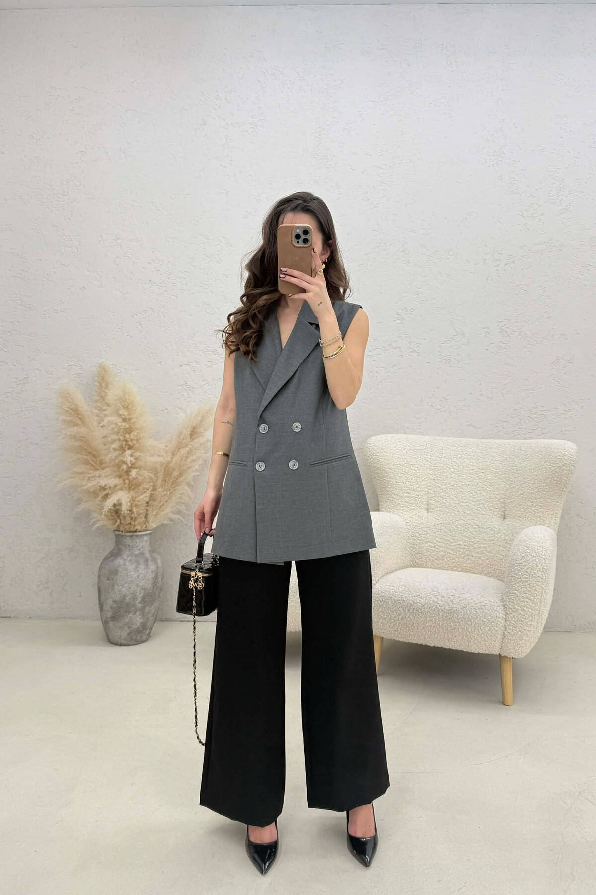 ONE COLOR BUTTONED WOMAN VEST BLACK/ E ZEZE