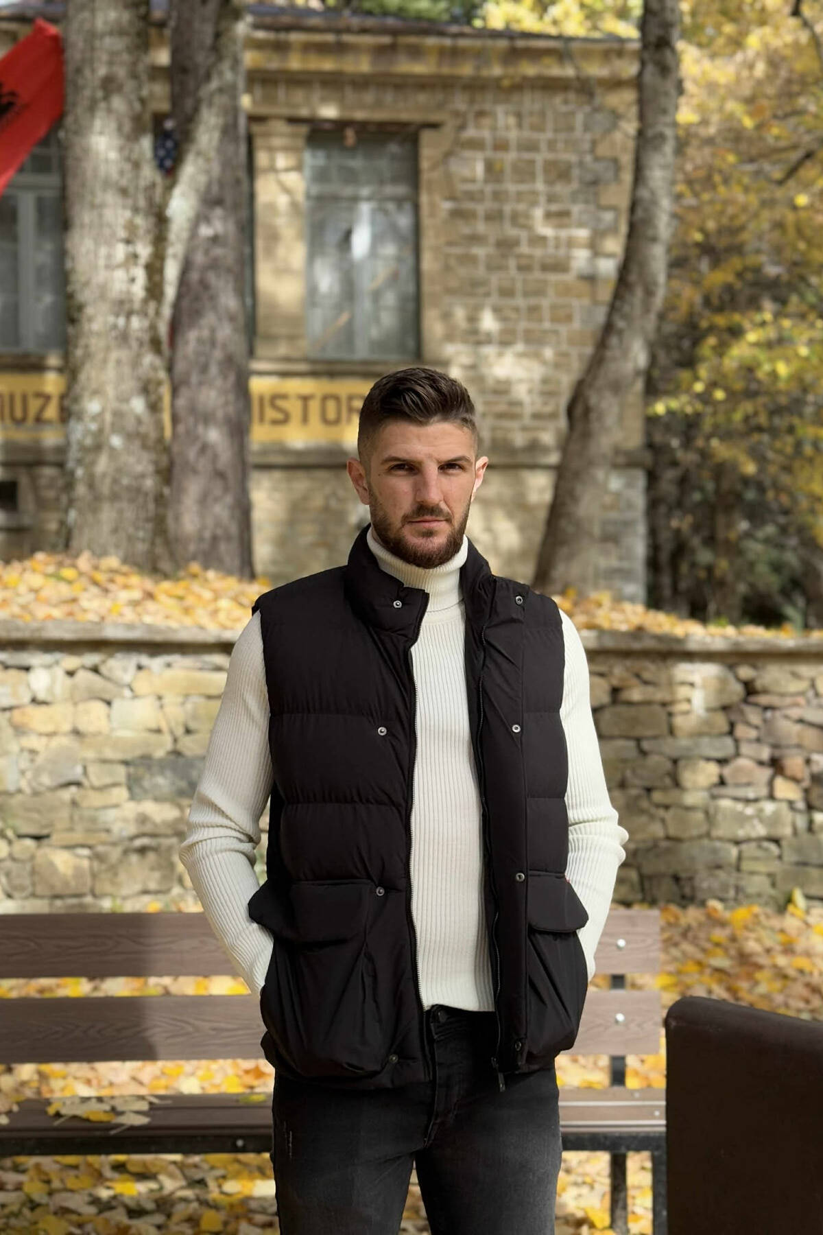 JELEK NJË NGJYRËSH ME ZINXHIR DHE ME DETAJIN E XHEPAVE PËR MESHKUJ NË NGJYRË TË ZEZË