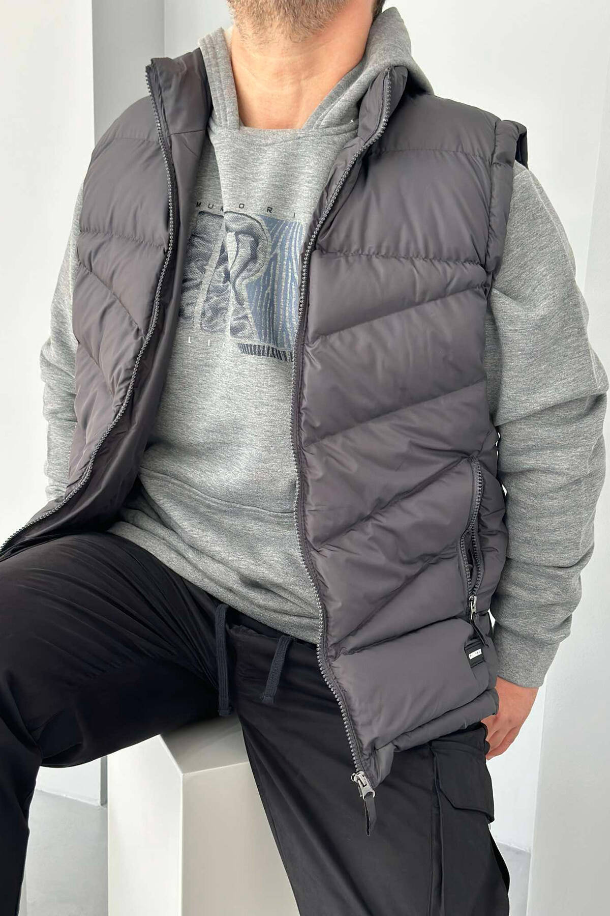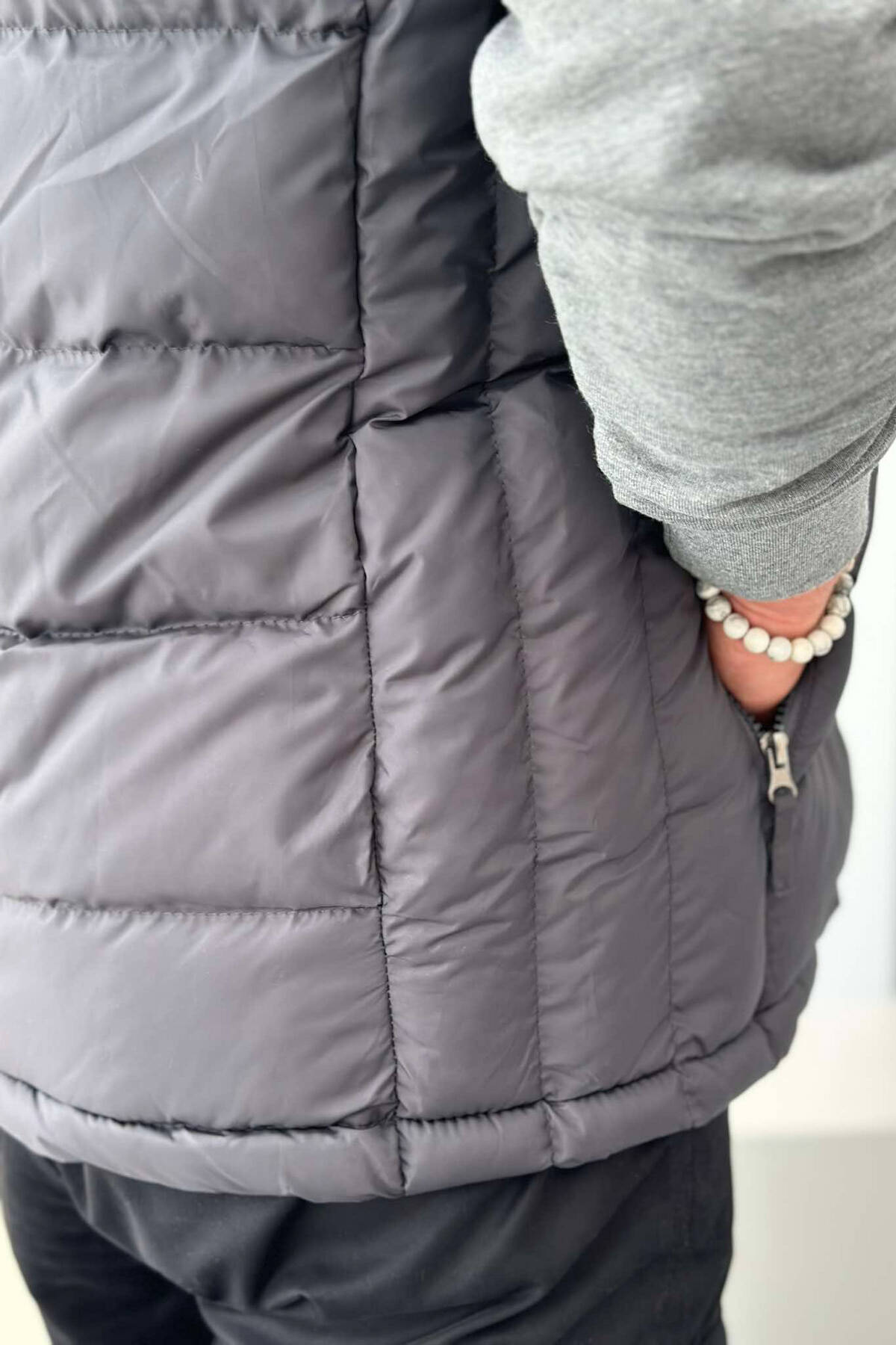 Jelek i thjeshtë një ngjyrësh me jake të ngritur mbërthimi i përparmë me zinxhir , me dy xhepa anësorë po me mbërthim me zinxhir , nderthurja e gjithe këtyre elementeve i shtojne jeleku komoditet dhe stil , mjaf i ngrohtë.