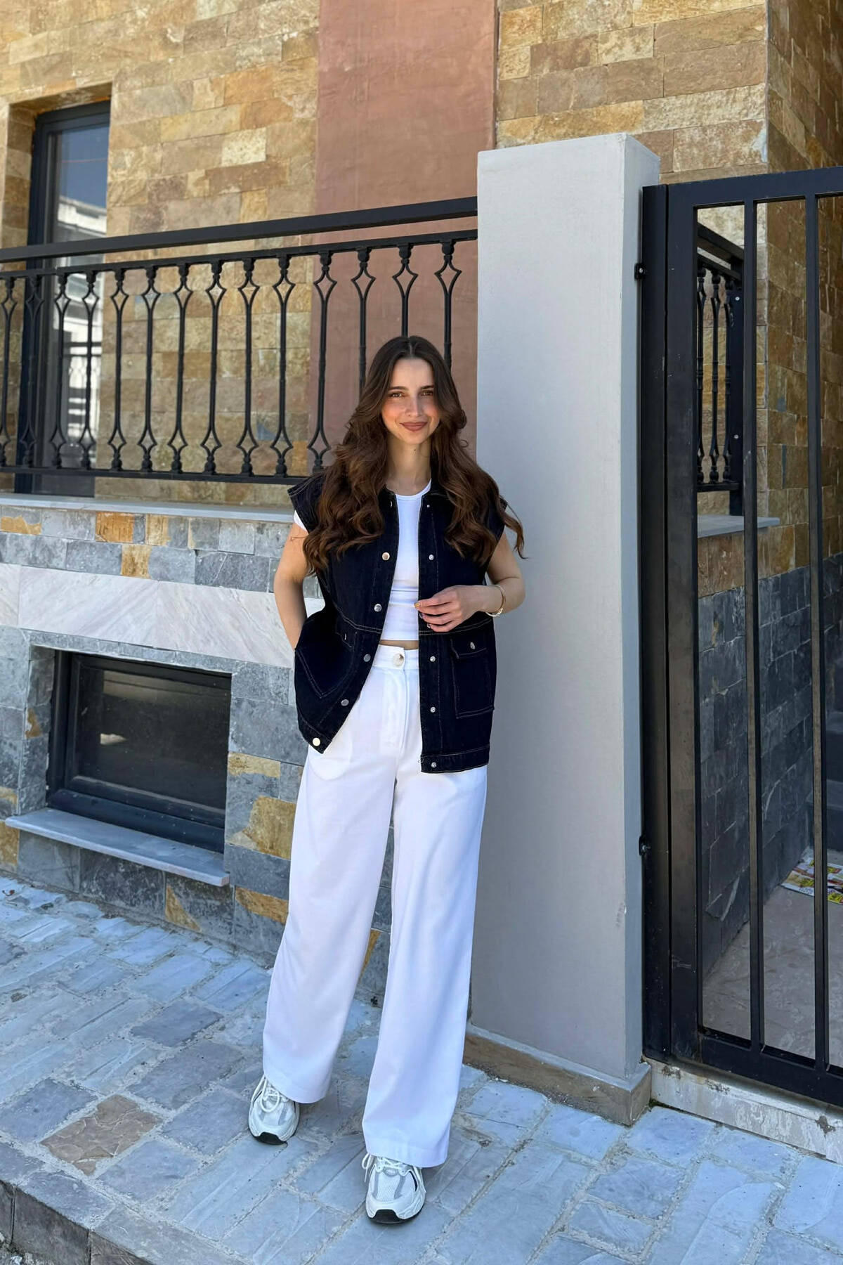 ONE COLOR BUTTONED WOMAN VEST BEIGE/BEZHE