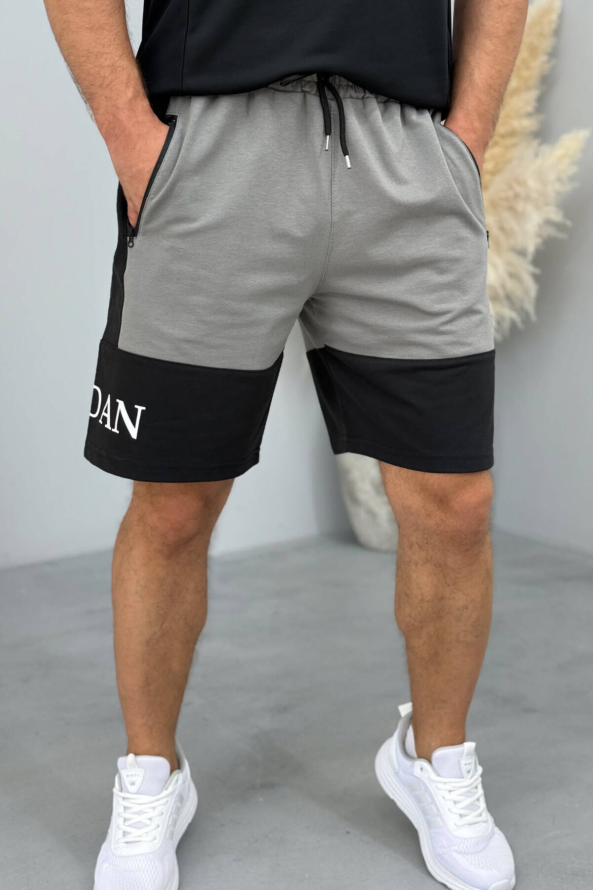 ZIPPER POCKETS SIMPLE MEN SHORT SWEATPANTS GREY ASH/GRI HIRI