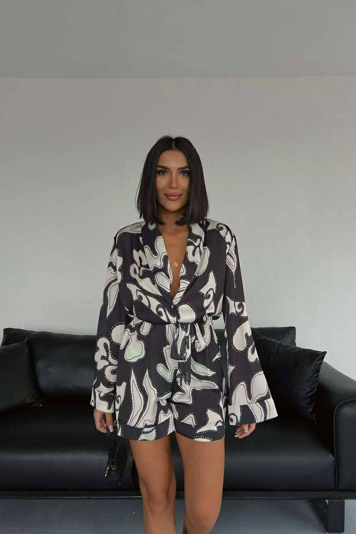 JUMPSUIT ME LIDHESE DHE DIZAJNE ABSTRAKTE PER FEMRA NE NGJYRE TE ZEZE