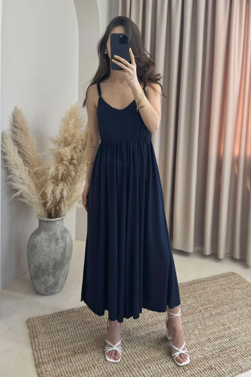 JUMPSUIT NJË NGJYRËSH I THJESHTË PËR FEMRA NË NGJYRËN BLU E ERRËT