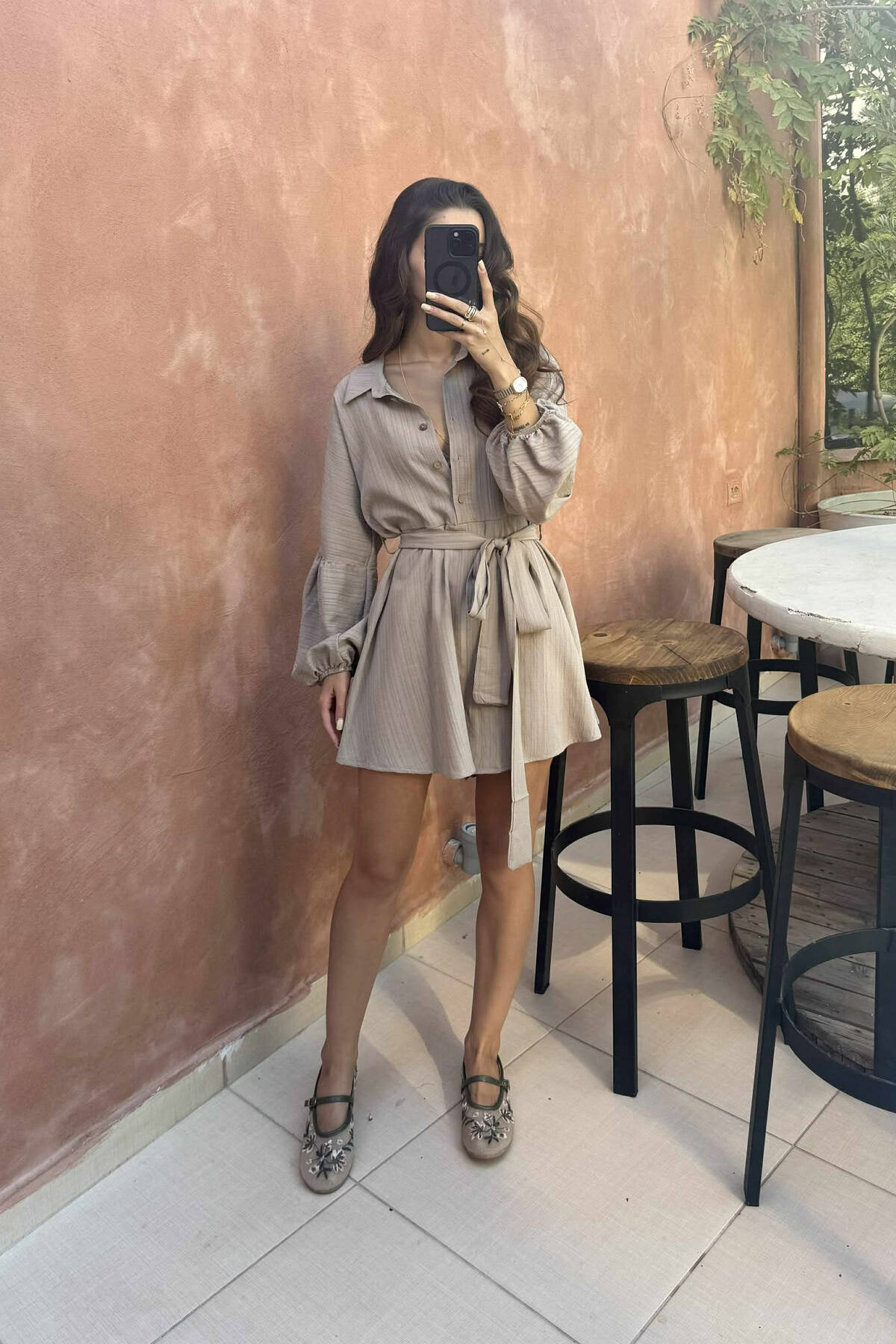 JUMPSUIT NJË NGJYRËSH ME KOPSA DHE LIDHËSE PËR FEMRA NË NGJYRËN KAFE TË ZBARDHUR