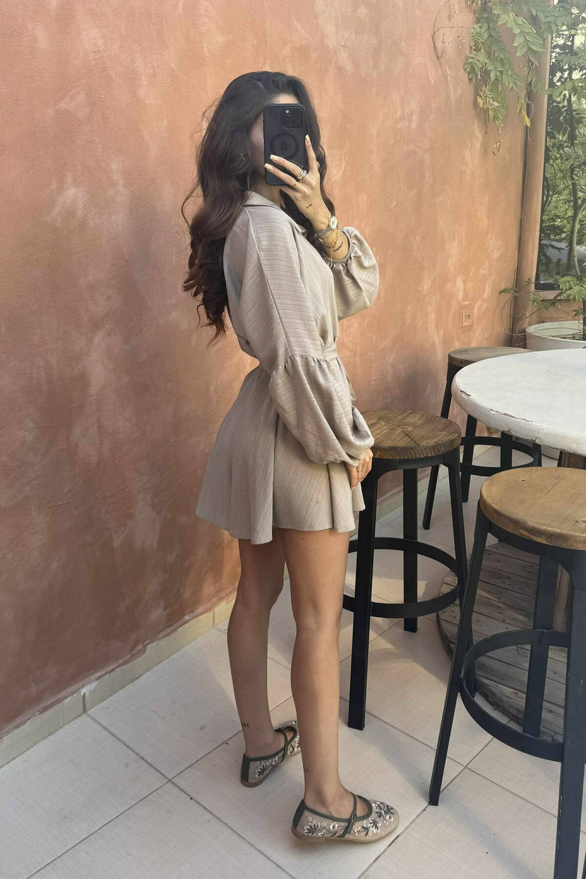 JUMPSUIT NJË NGJYRËSH ME KOPSA DHE LIDHËSE PËR FEMRA NË NGJYRËN KREM