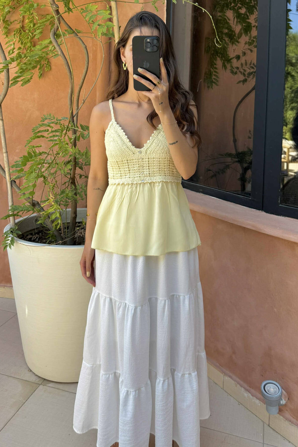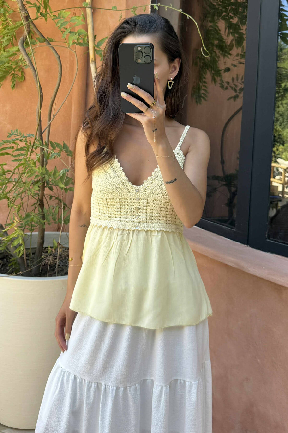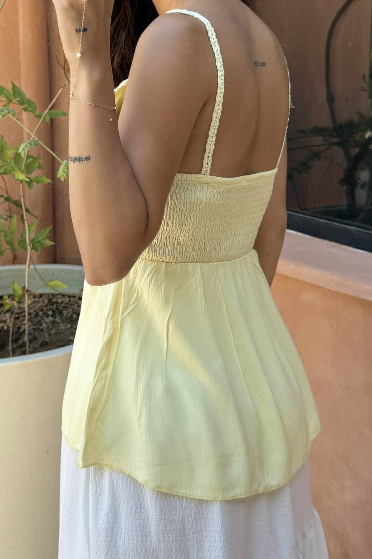 KANATIERE E THJESHTË ME DETAJIN E KOPSAVE PËR FEMRA NË NGJYRËN E VERDHË