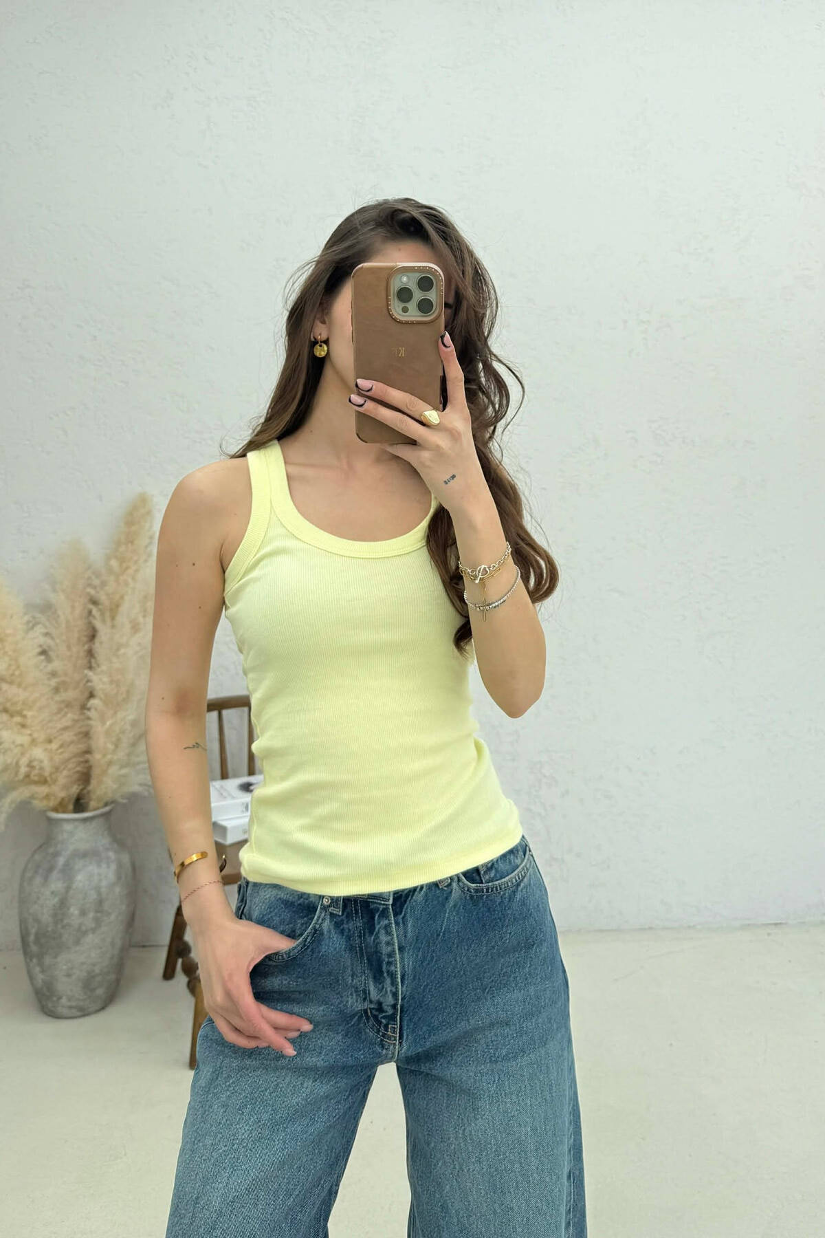 PEARLS RIBBON DETAILS WOMAN TANK TOP YELLOW/E VERDHE