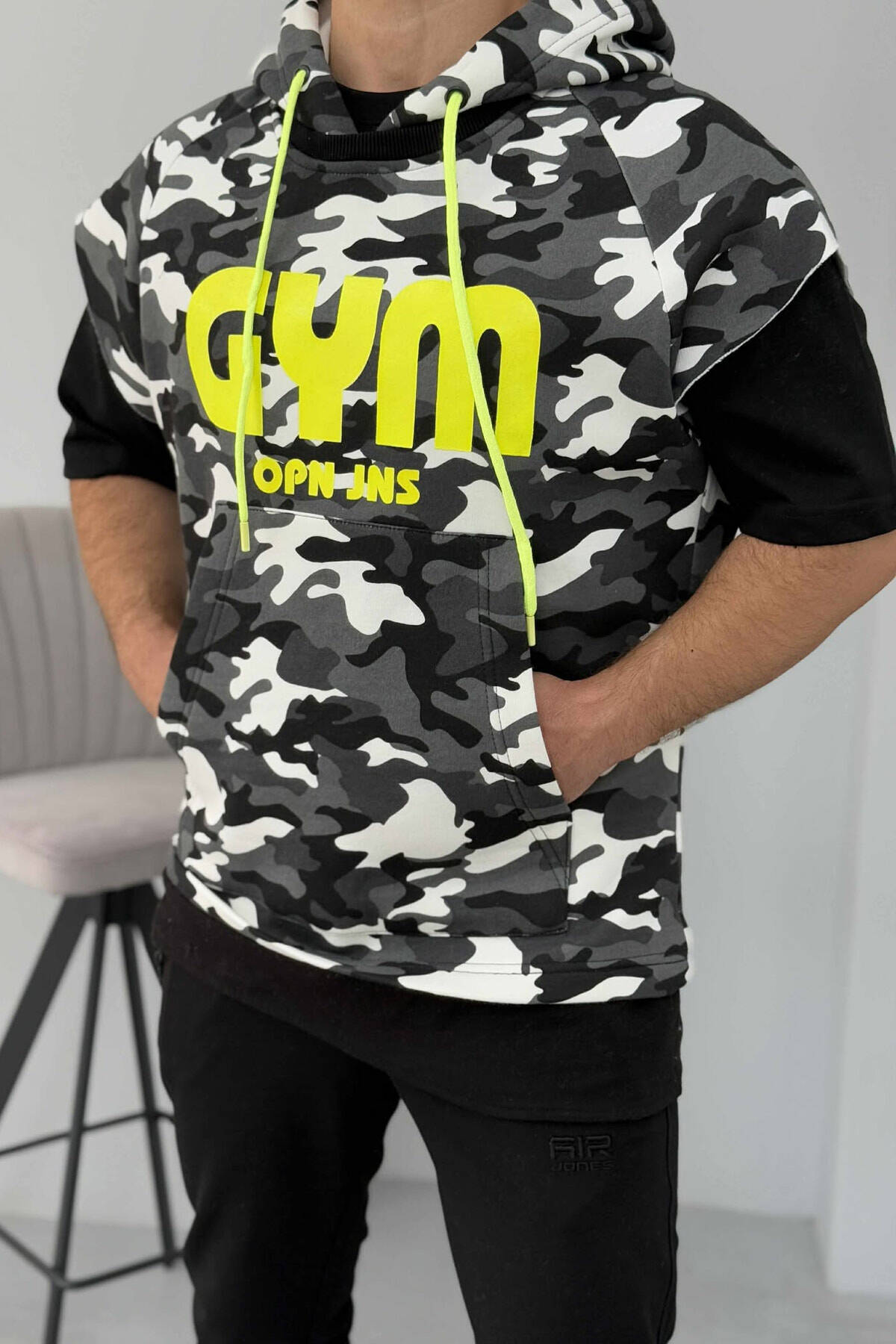KANATJERE NJË NGJYRËSHE ME KAPUÇ PËR MESHKUJ NË NGJYRËN E VERDHË