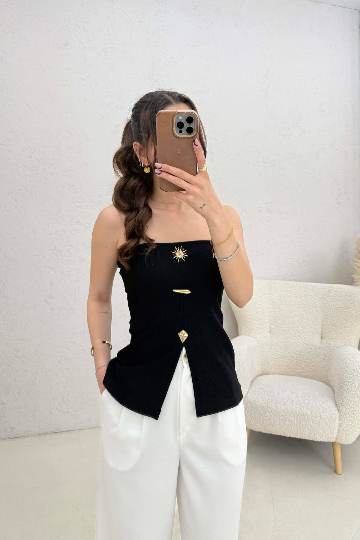 KANATJERE NJE NGJYRESHE ME BUTONA GOLD PER FEMRA NE NGJYRE TE ZEZE