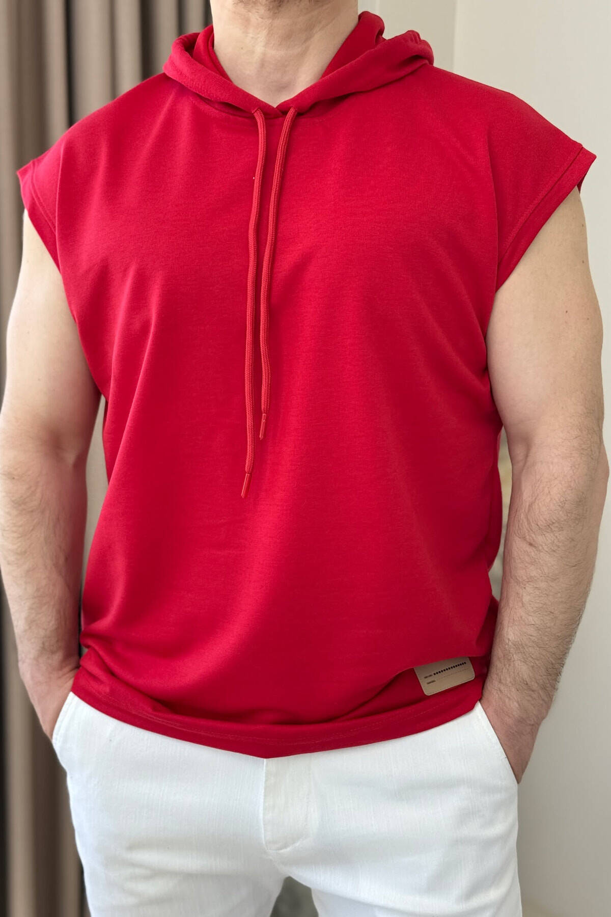KANATJERE NJË NGJYRËSHE ME KAPUÇ PËR MESHKUJ NË NGJYRËN E KUQE