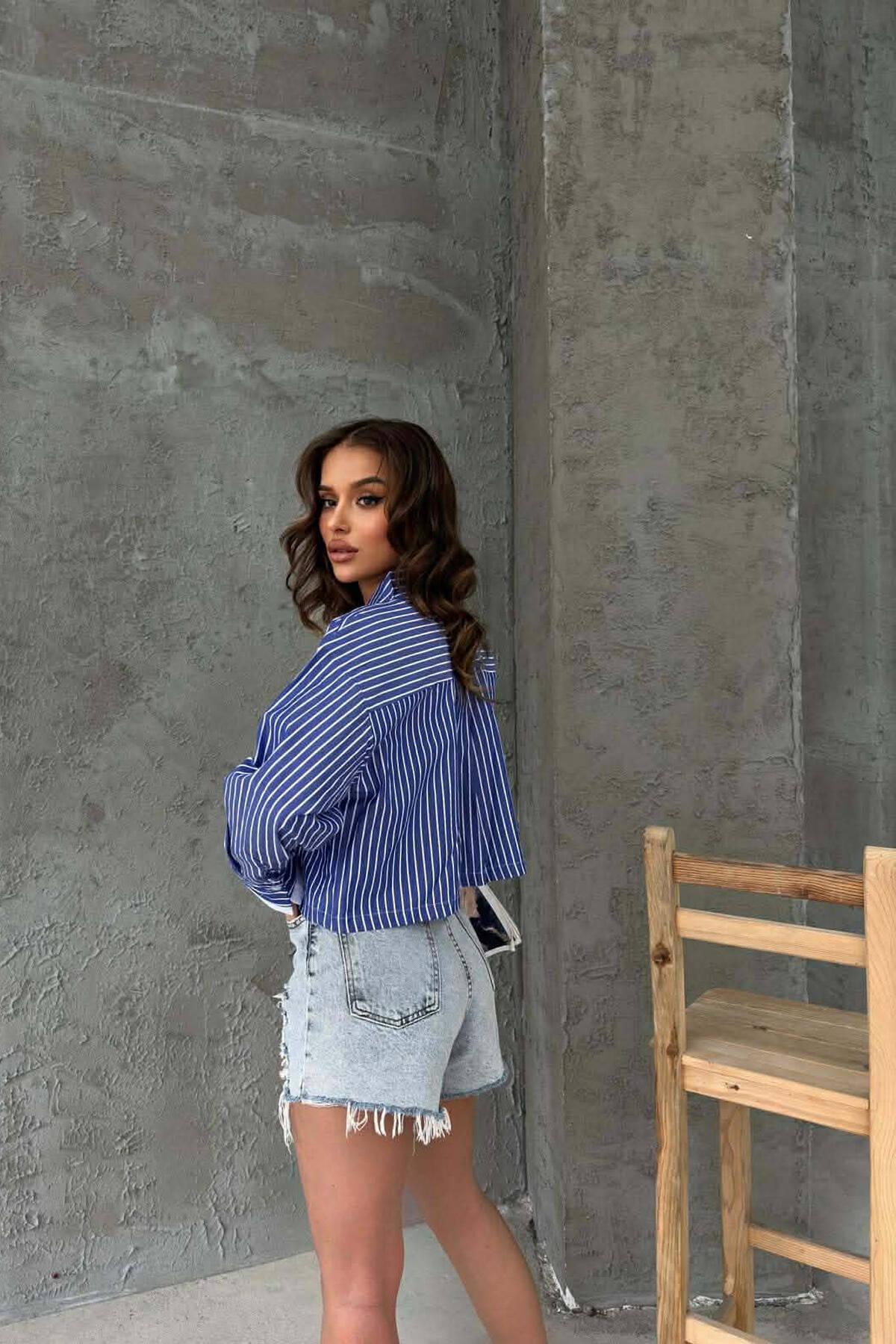 KEMISHE E SHKURTER ME VIJA PER FEMRA NE NGJYRE BLU