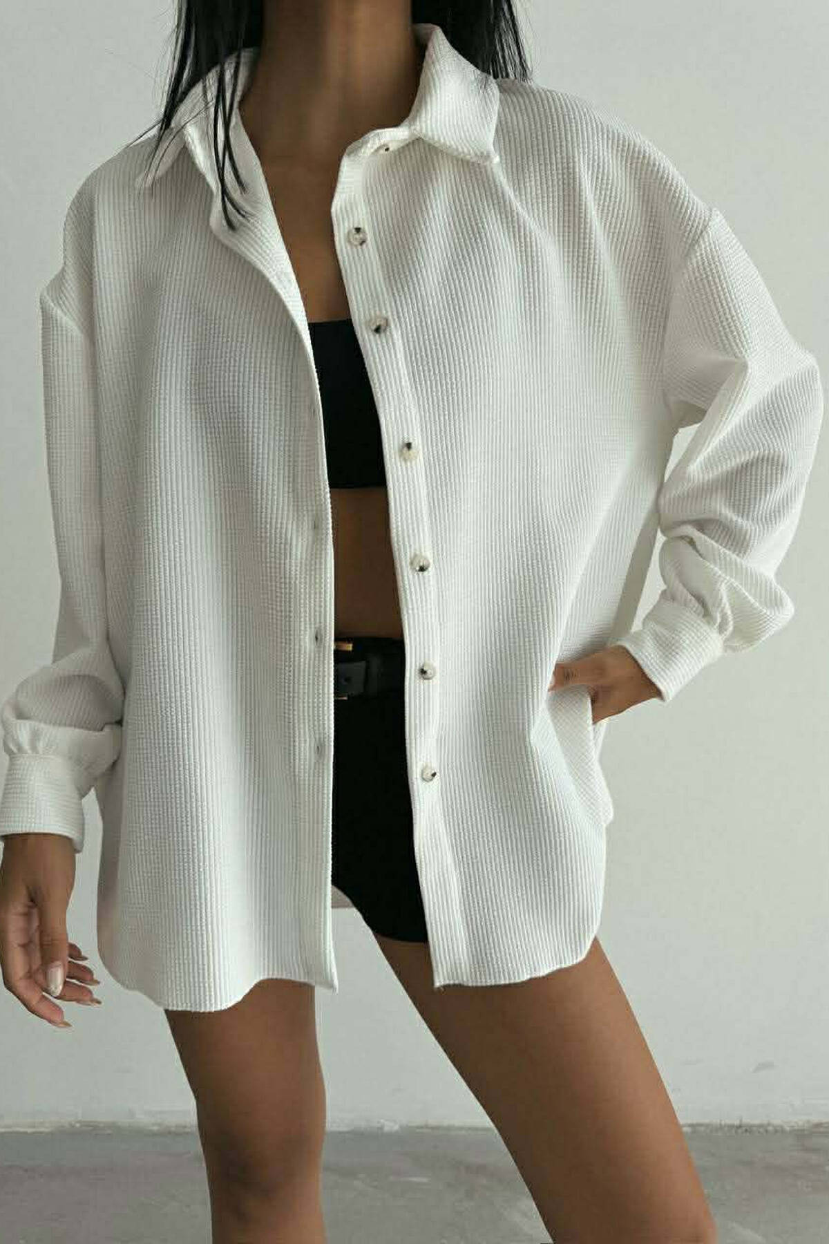 KEMISHE E THJESHTE ME BUTONA PER FEMRA NE NGJYRE TE BARDHE
