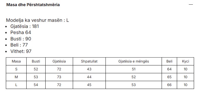 KEMISHE ME MENGE TE GJATA PER FEMRA NE NGJYRE LEJLA TE ZBARDHUR