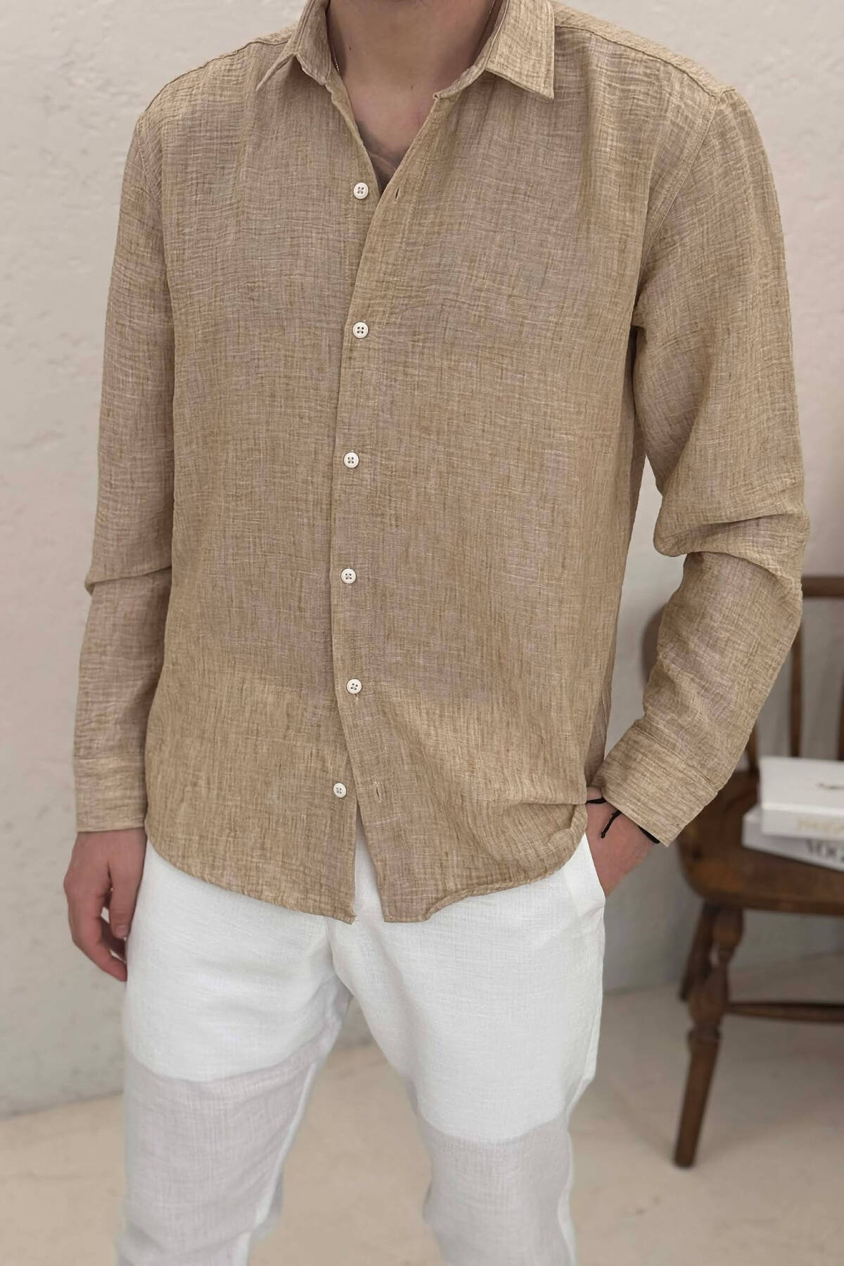 KEMISHE NJE NGJYRESHE ME TEKSTURE PER MESHKUJ NE NGJYRE KAFE TE ZBARDHUR