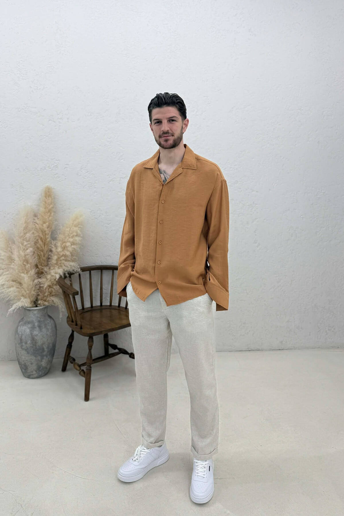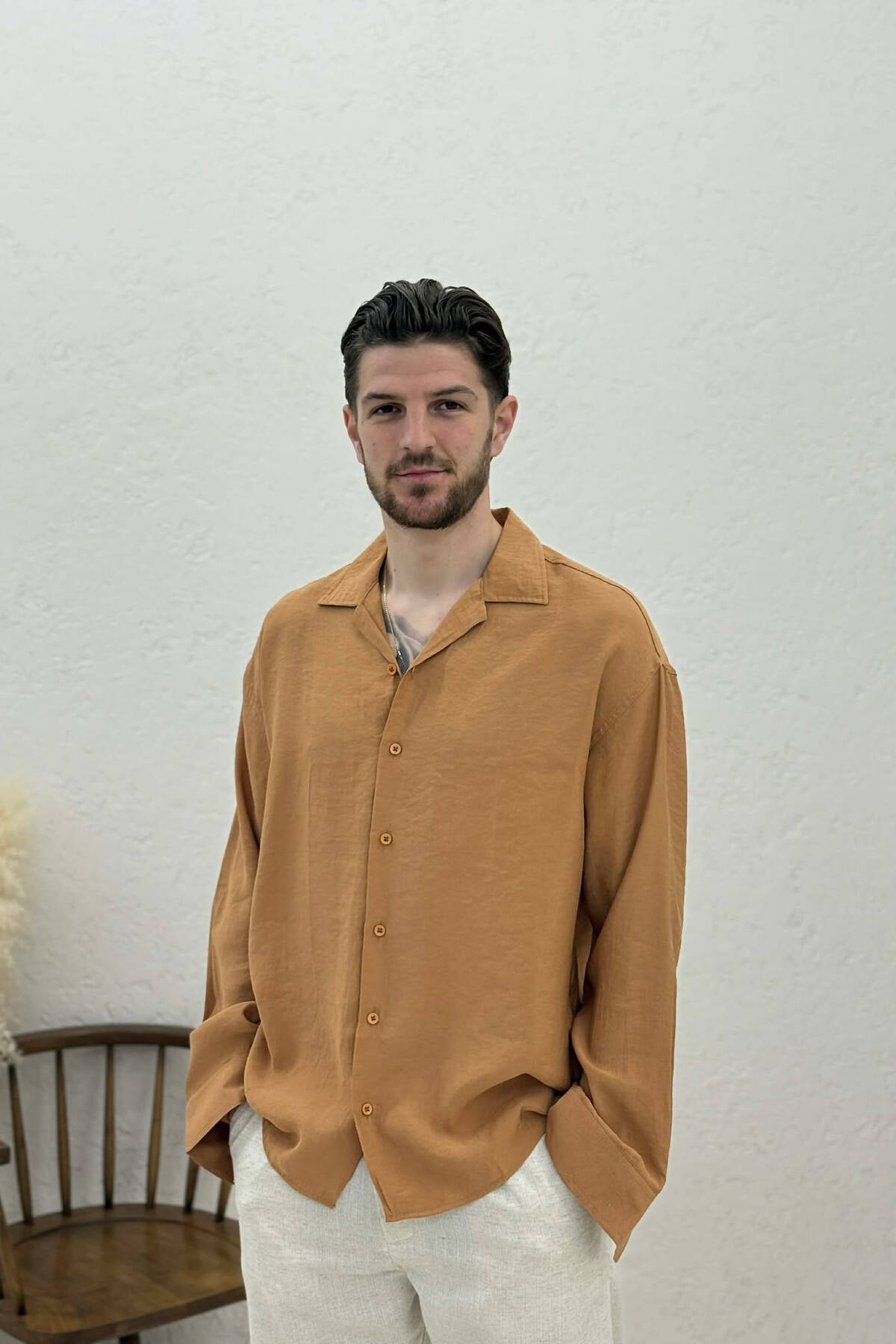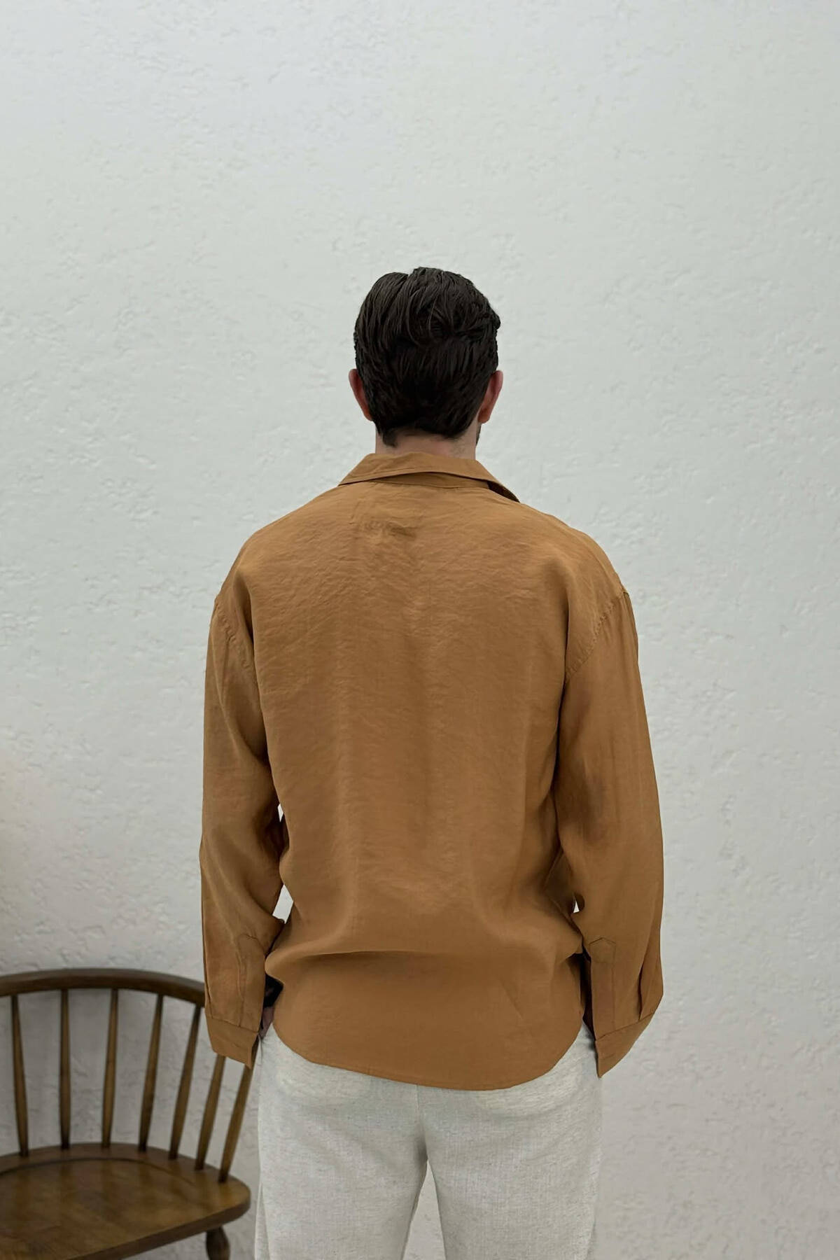 KEMISHE NJE NGJYRESHE ME TEKSTURE PER MESHKUJ NE NGJYRE KAFE TE ZBARDHUR