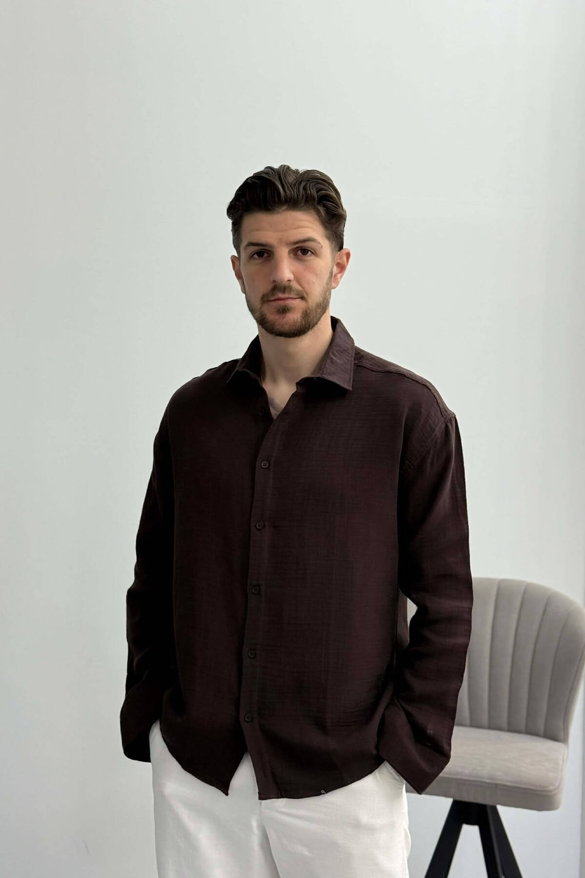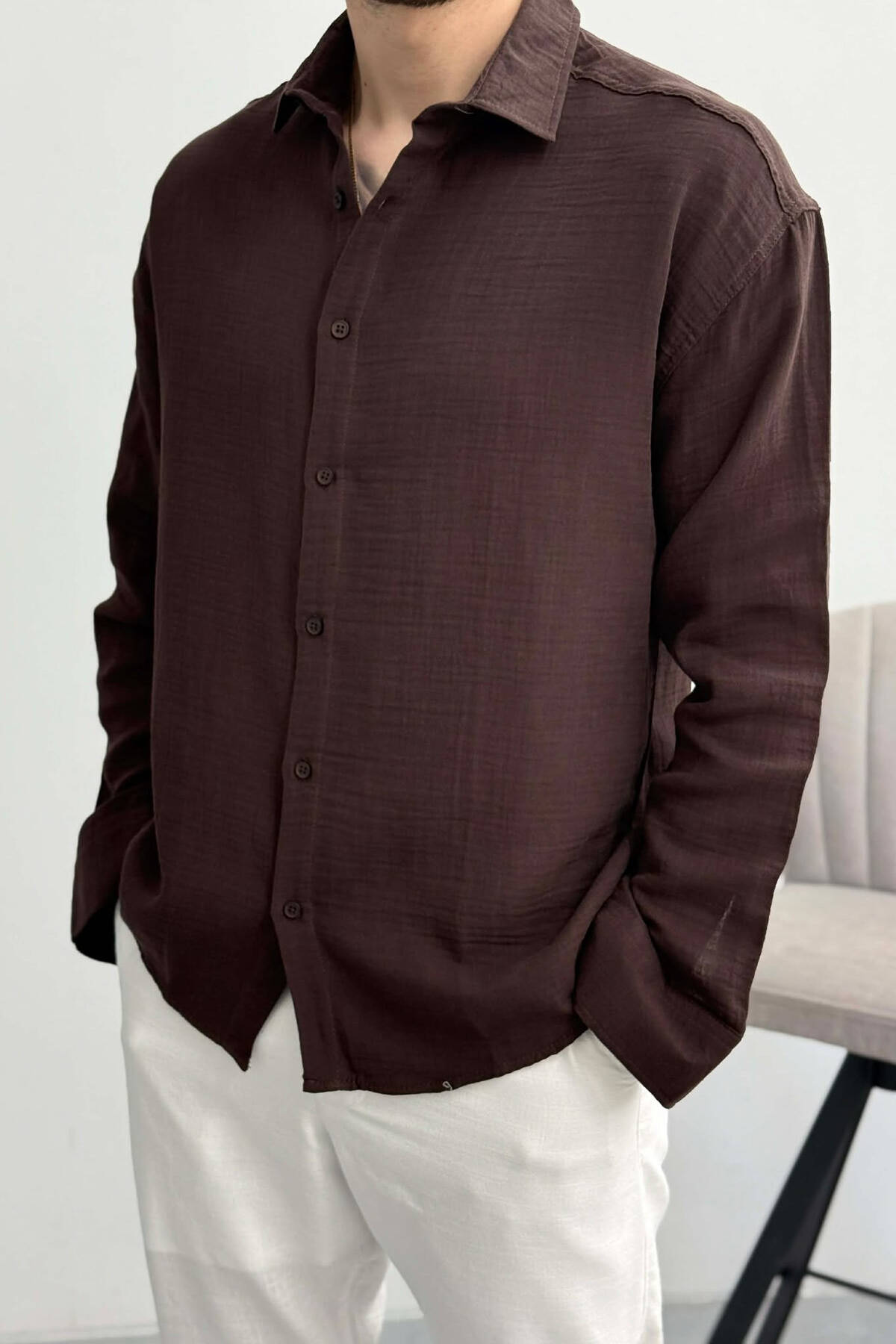 KEMISHE NJE NGJYRESHE ME TEKSTURE PER MESHKUJ NE NGJYRE KAFE TE ZBARDHUR