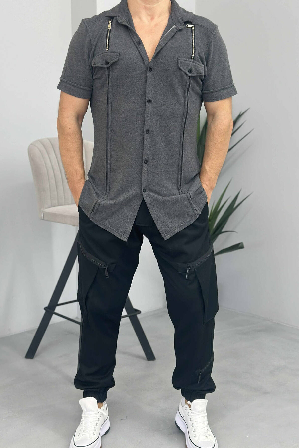 KËMISHË ME DETAJE TË THJESHTA PËR MESHKUJ NË NGJYRËN GRI E ERRËT