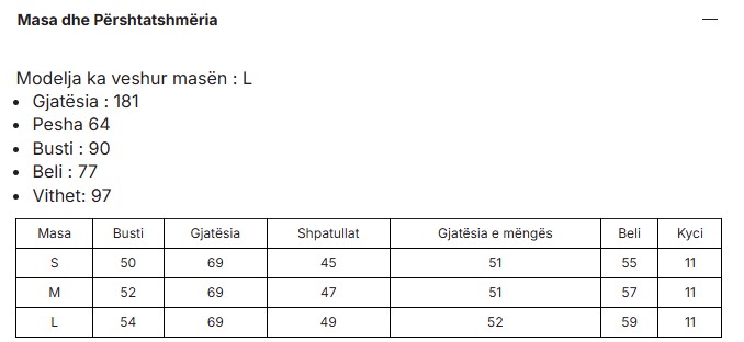 KEMISHE ME MENGE TE GJATA PER FEMRA NE NGJYRE LEJLA TE ZBARDHUR